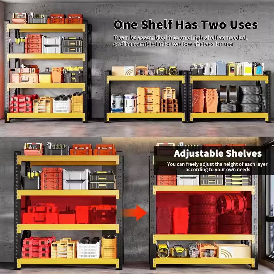 · Adjustable Metal Shelves: Our garage shelving Heavy Duty are adjustable. You can adjust the height of the shelves according to your needs. At the same time, you can also divide the high garage storage rack into two low ones to meet your storage requirements. The heavy duty garagre shelving is very suitable for garage storage and organization.