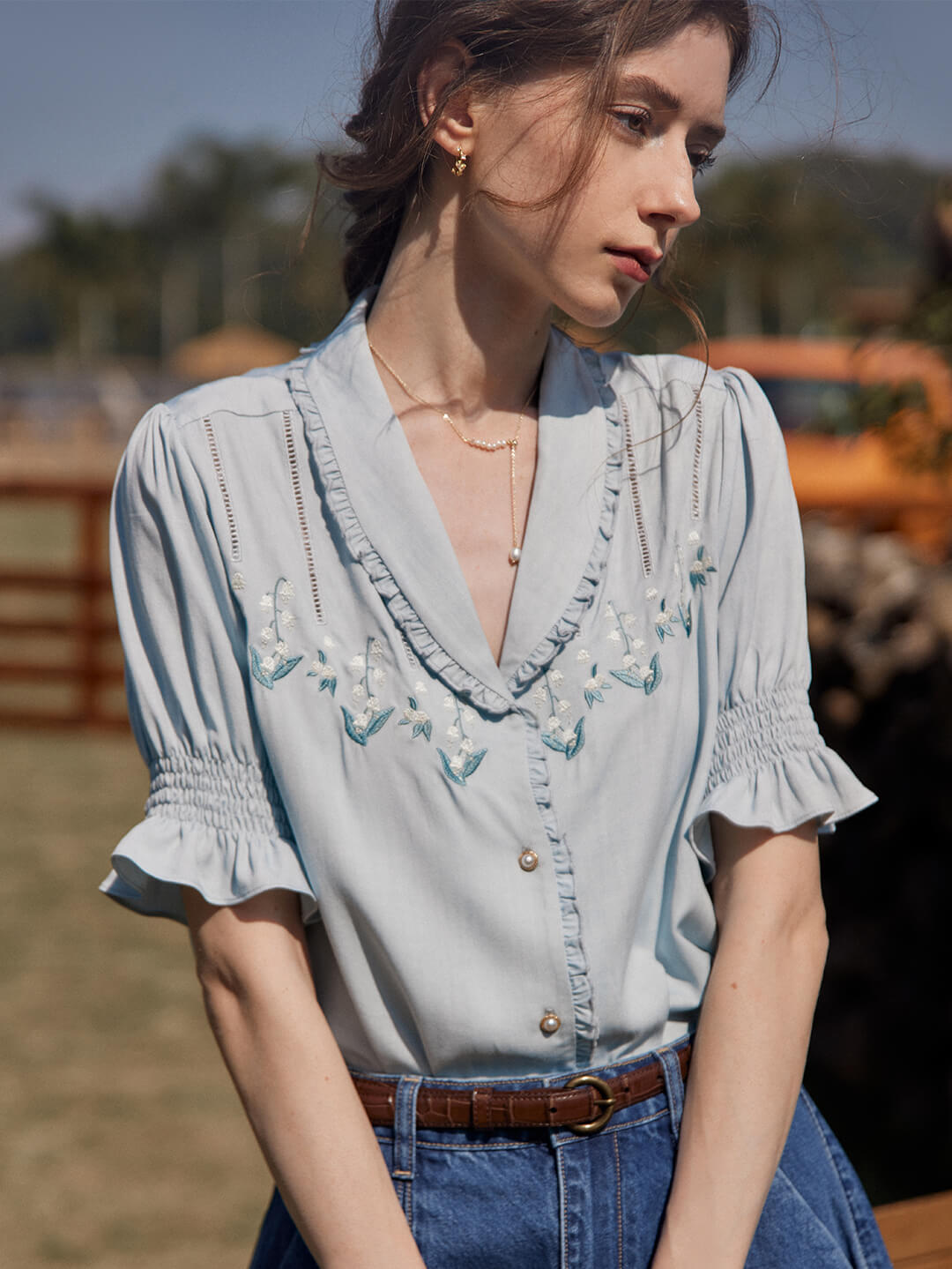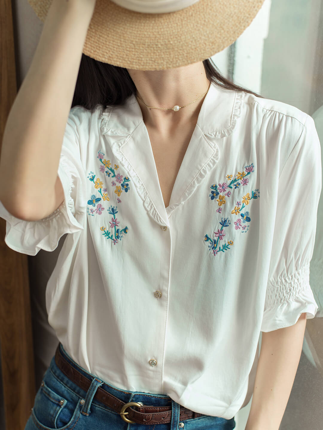 Alicia Floral Embroidery V-Neck Blouse