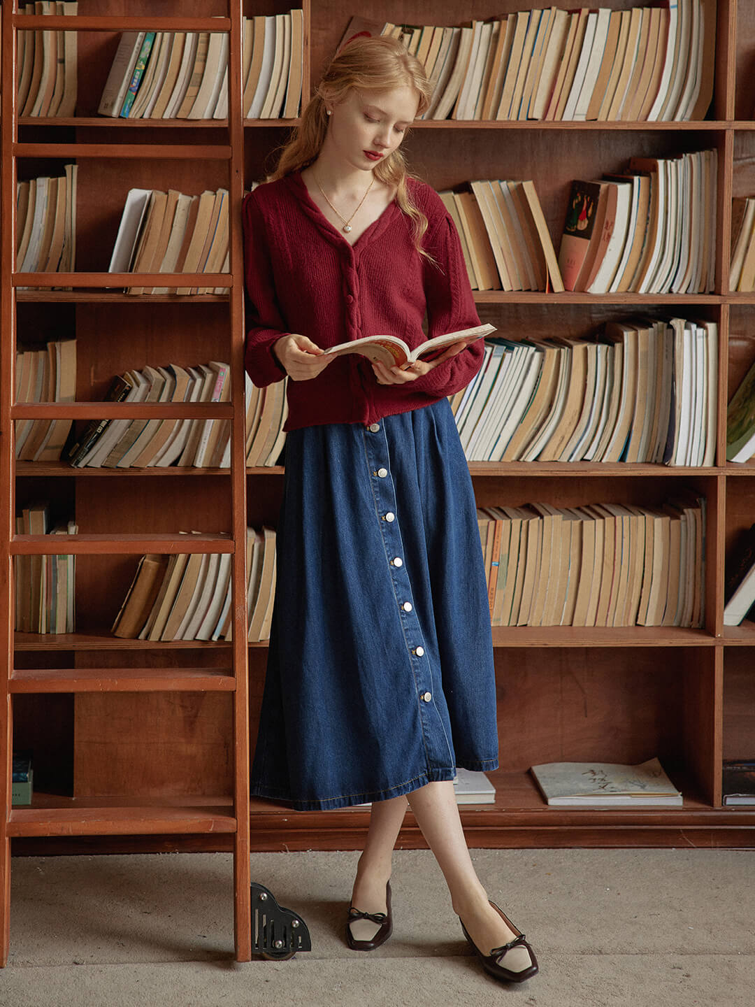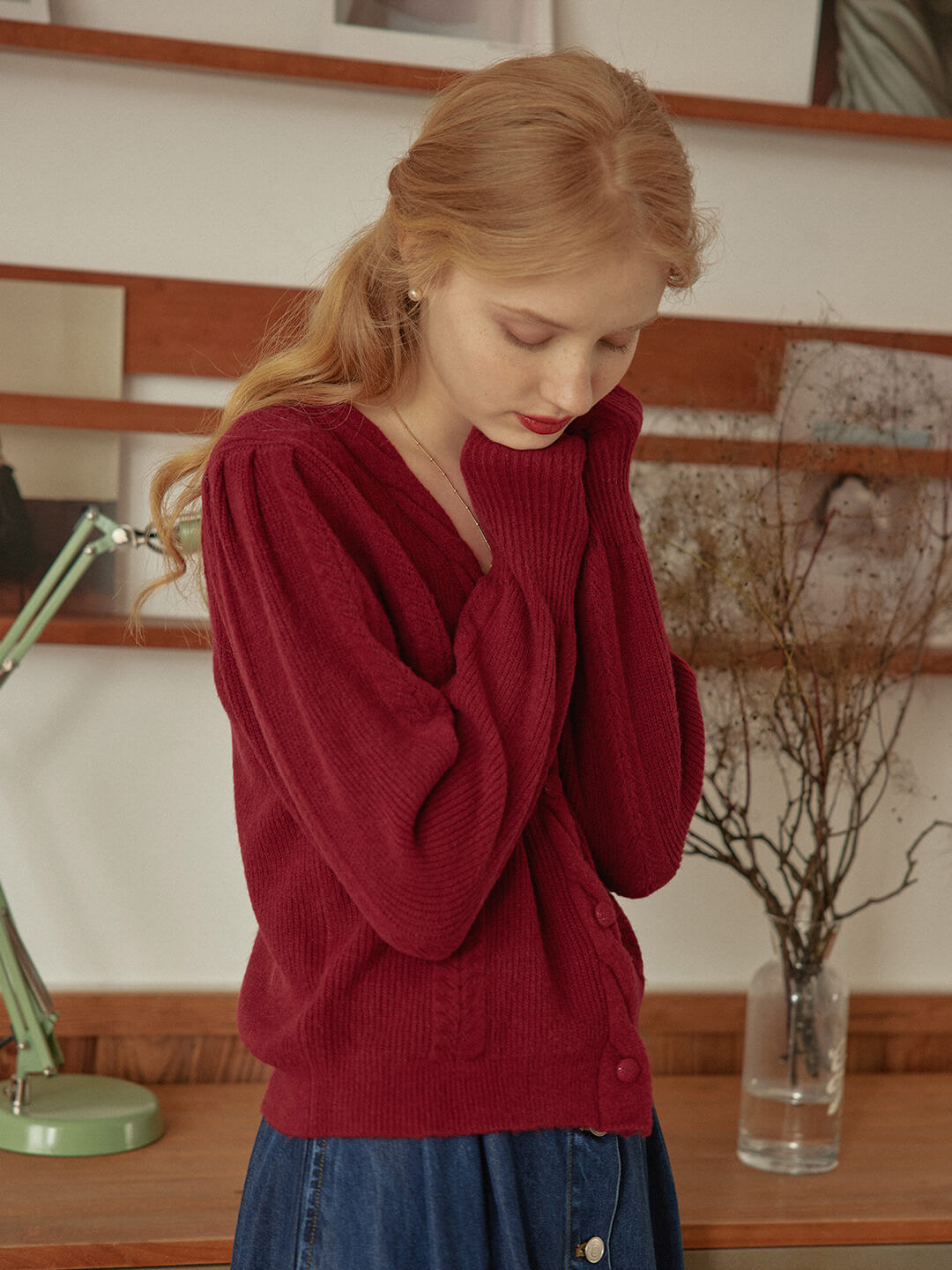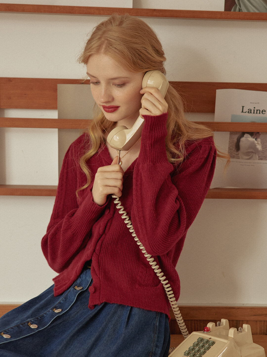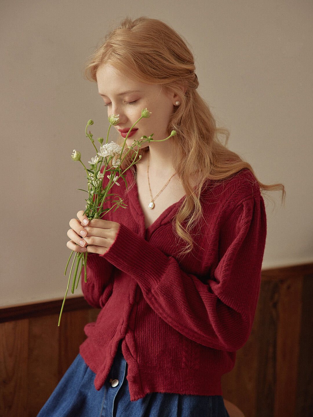 【Final Sale】Ava Vintage Style Cable Red Knit Cardigan