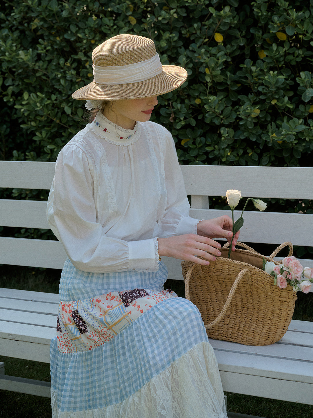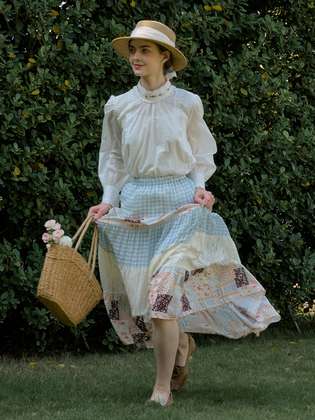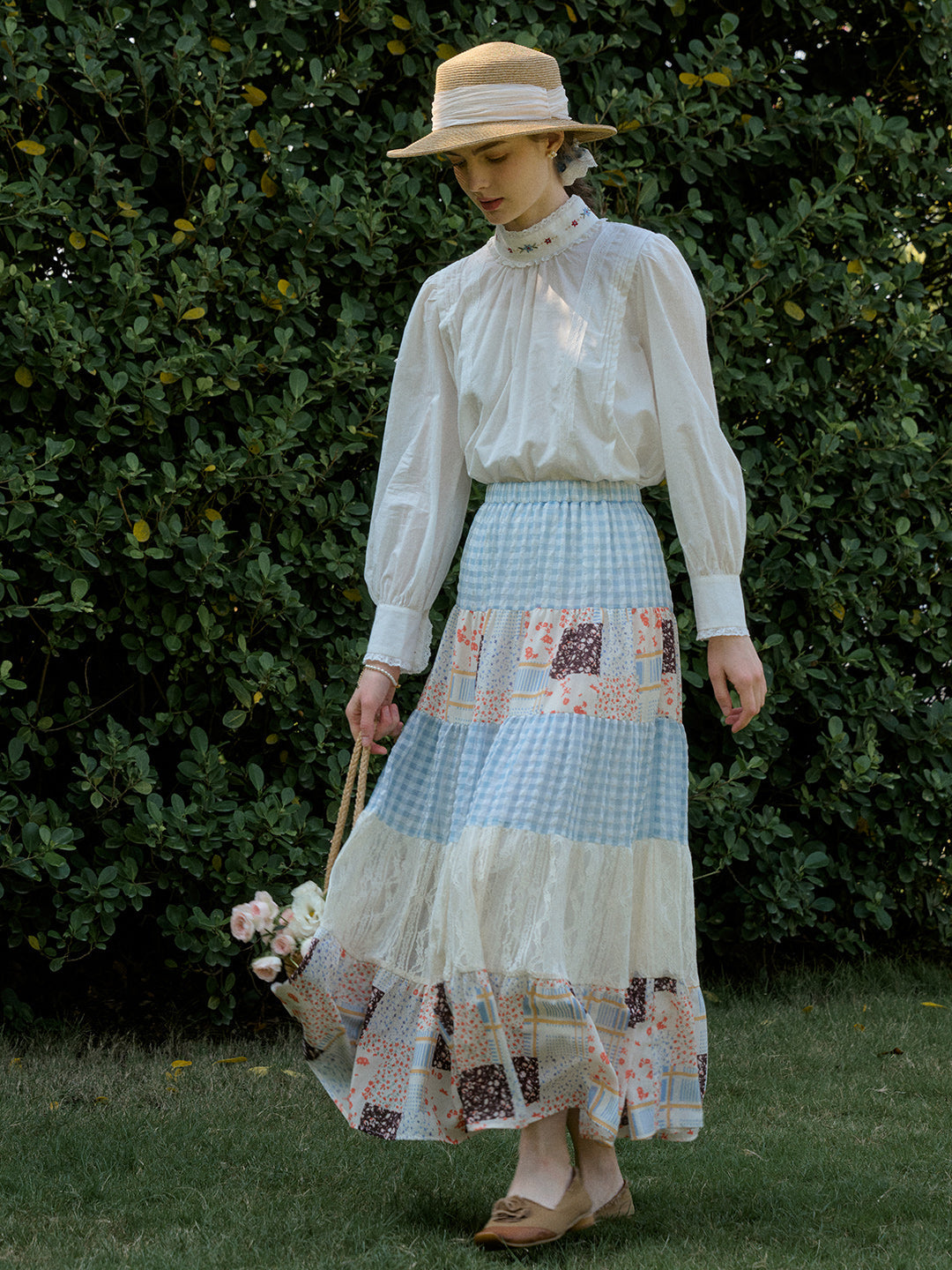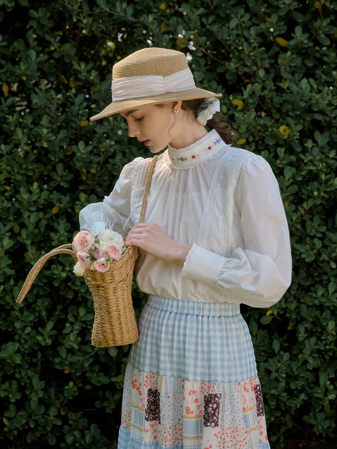 Detail | Loose and straight body shape, which can be controlled by any body shape; half-high collar design, which visually shows a slender neck; heavy-duty color embroidery on the neckline, rich and three-dimensional patterns, and tight embroidery threads; fluffy puff sleeves, retro court feeling, showing thinness and covering the flesh ; lined |