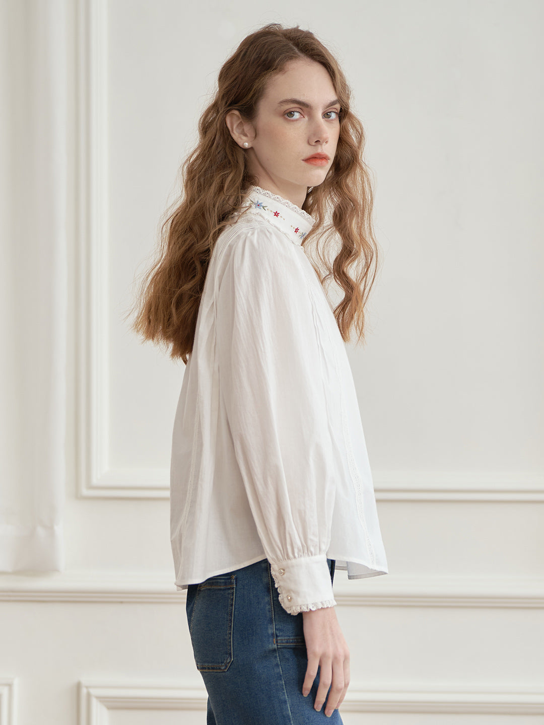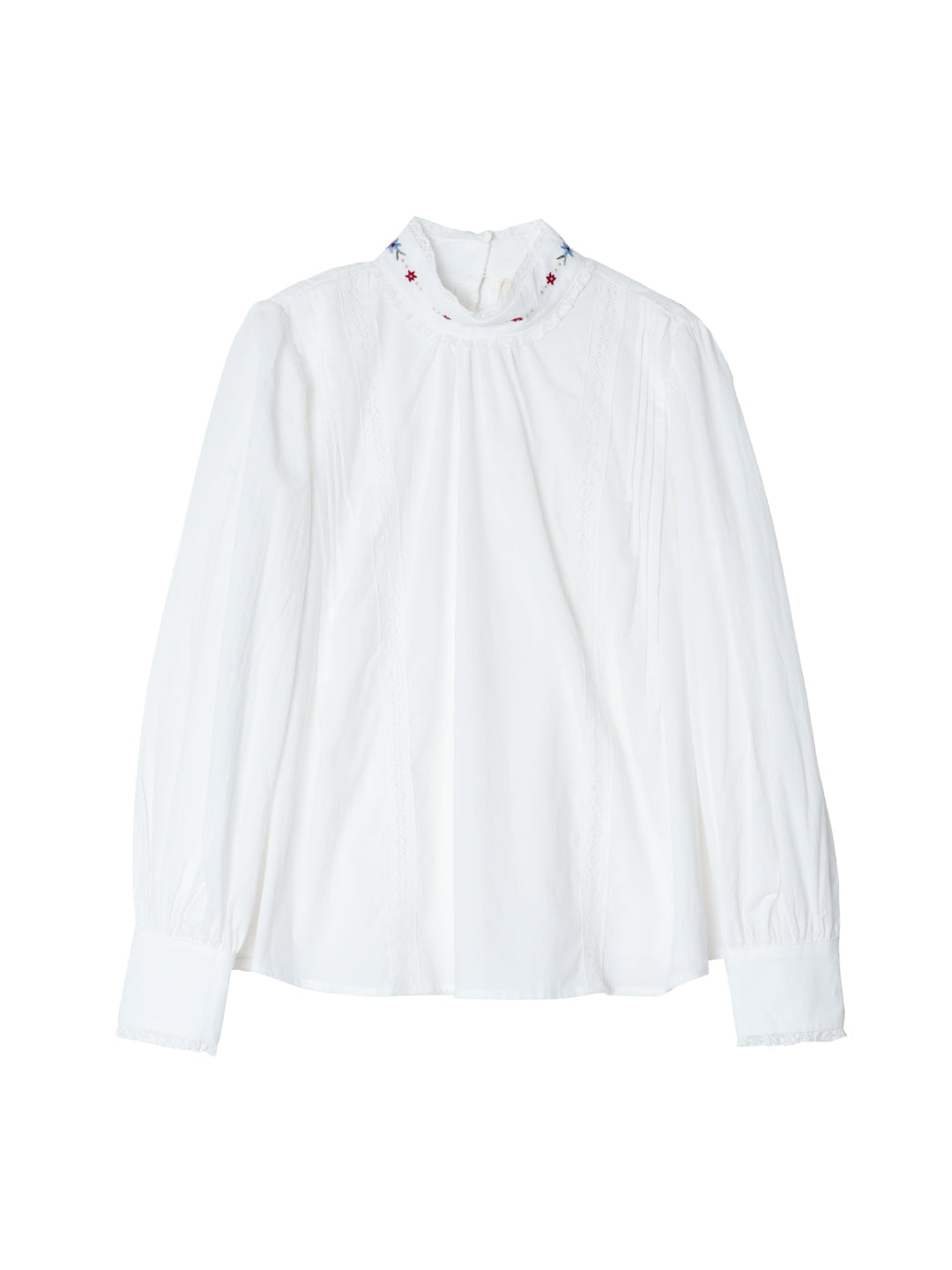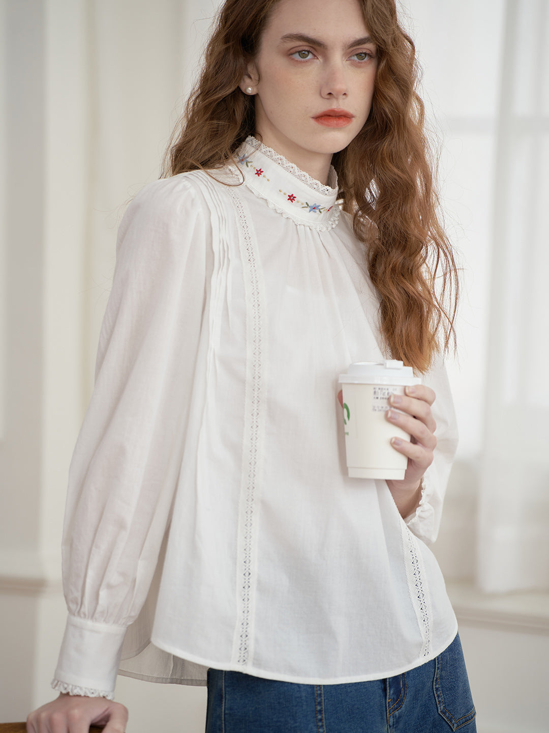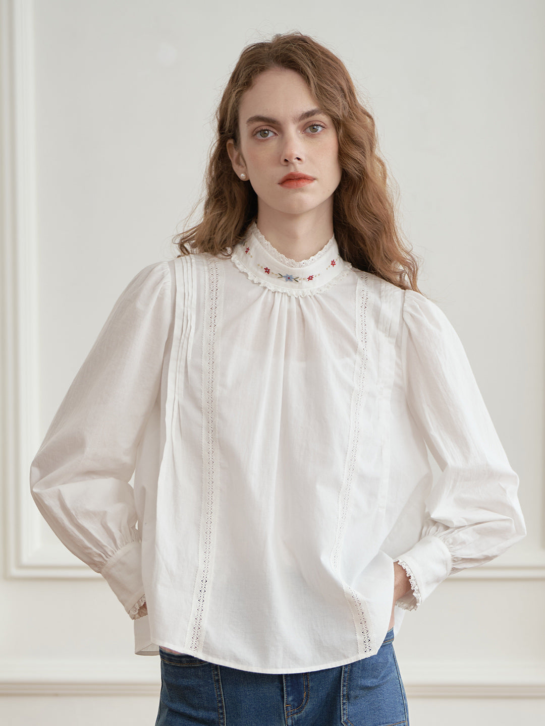 【Final Sale】Aylin Mock Neck Embroidered White Shirt
