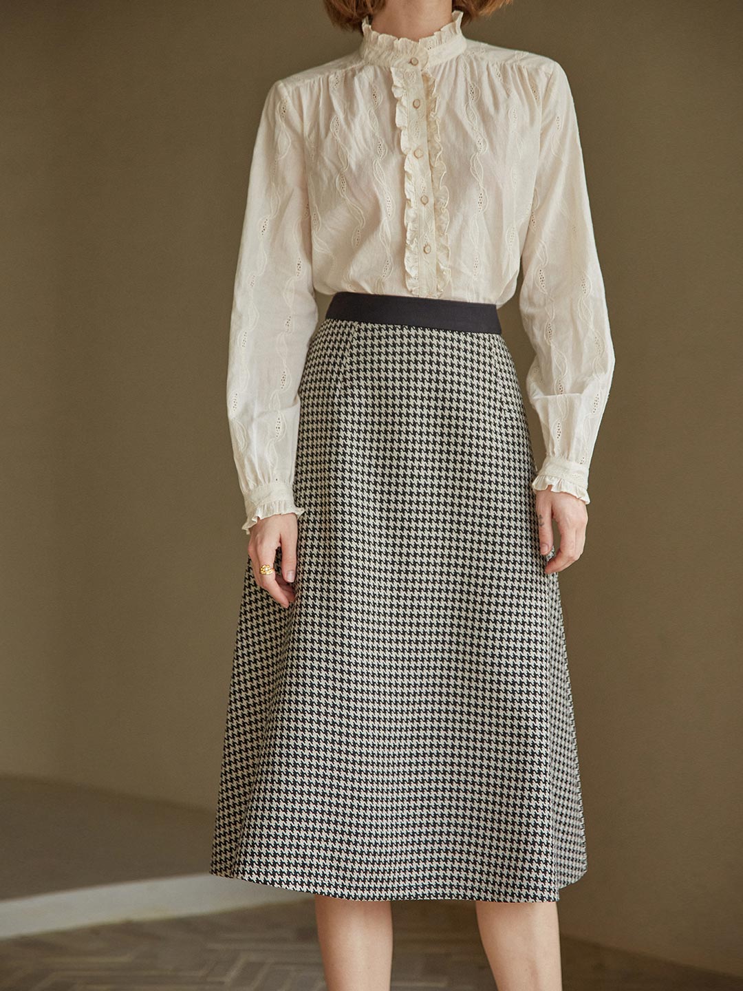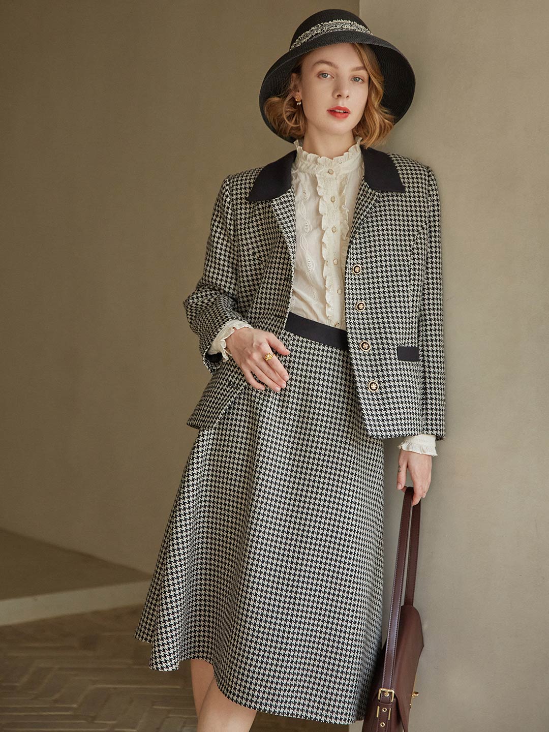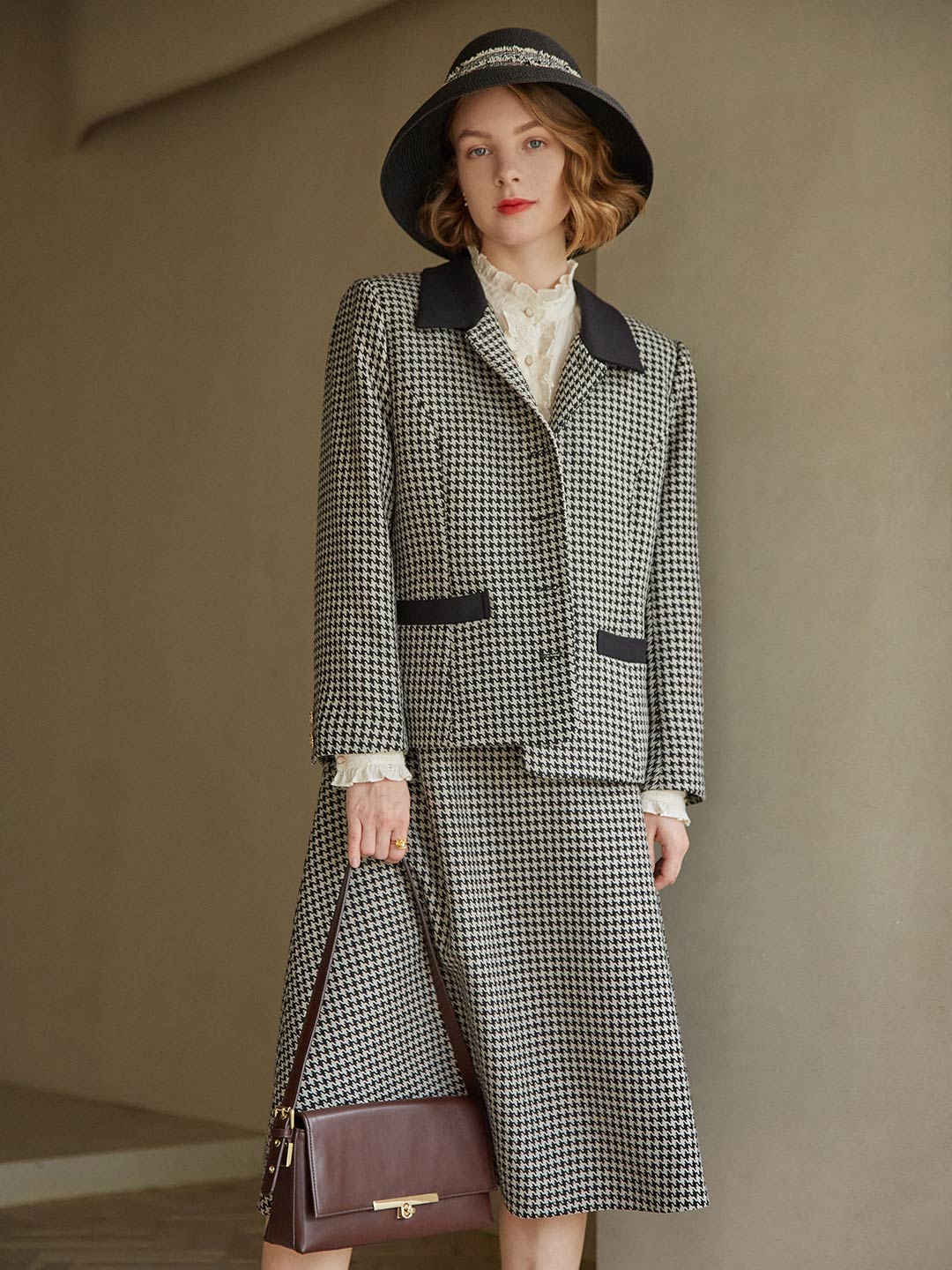 Houndstooth twill fabric: 100% Polyester Black twill fabric: 70% Polyester, 30% Rayon |
