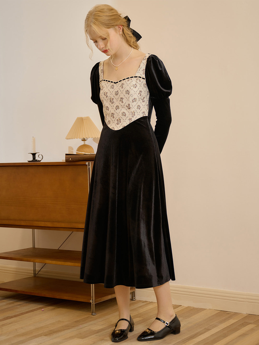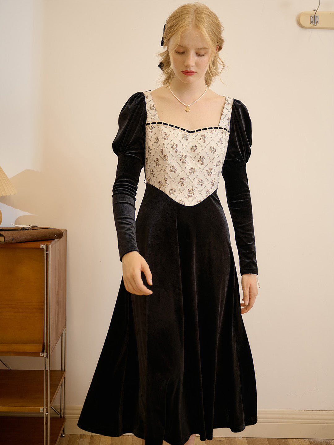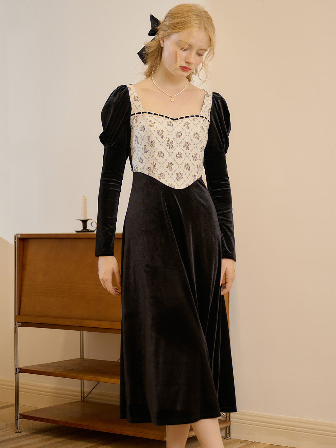 Eliza Square Neck Contrast Patchwork Puff Sleeve Dress