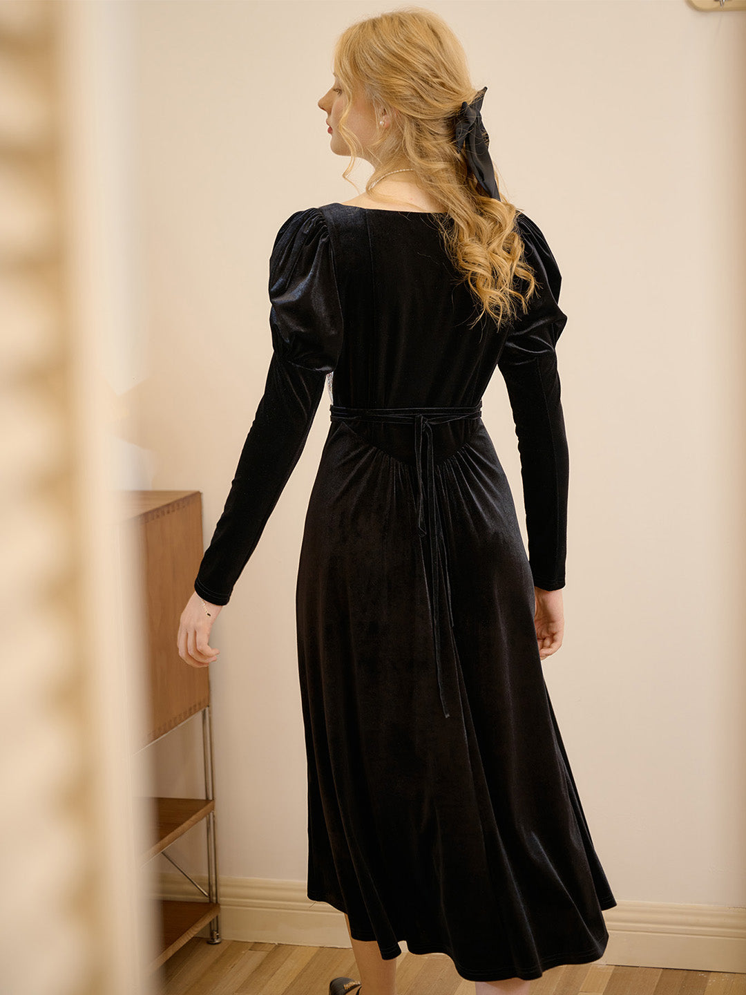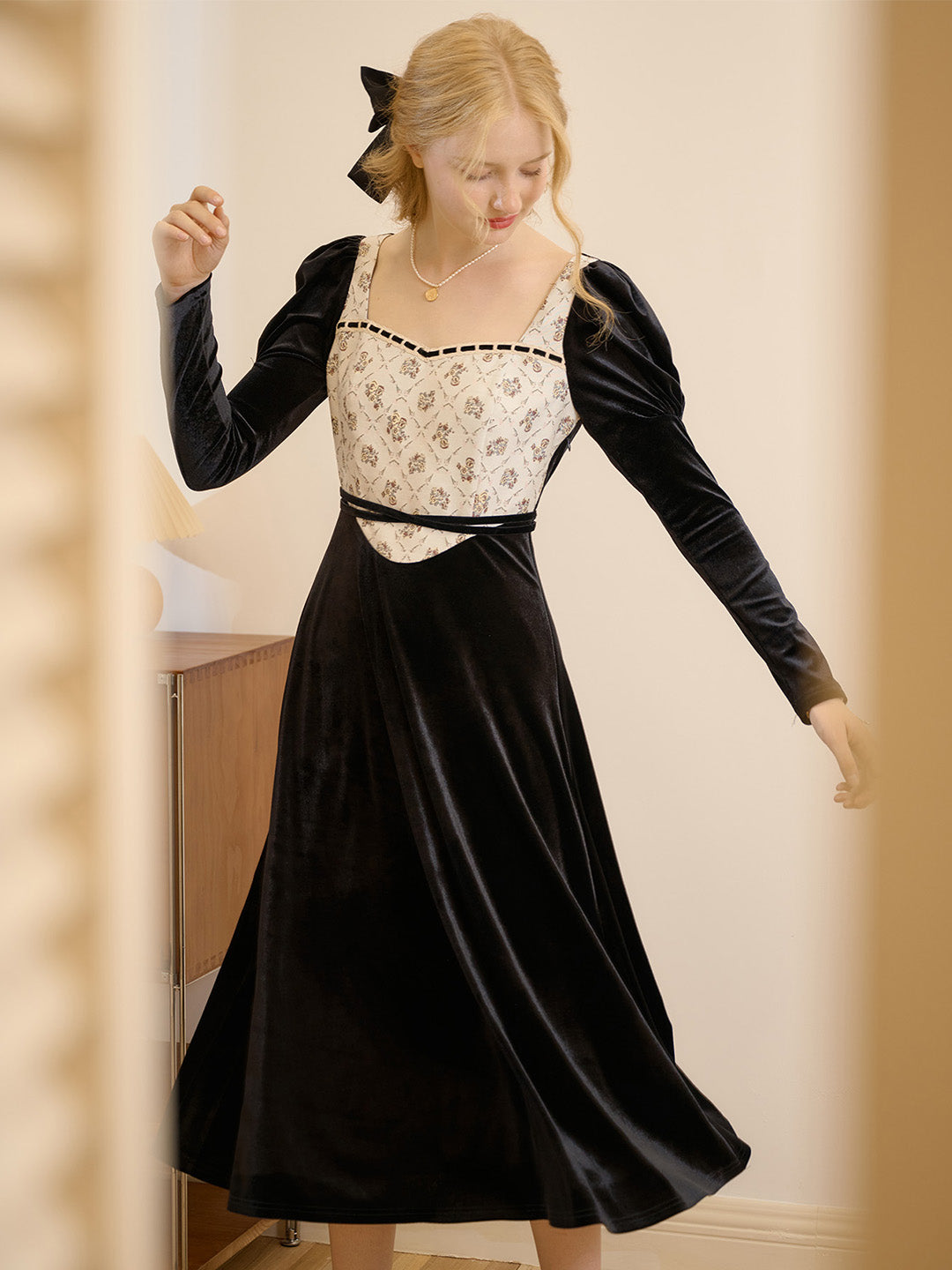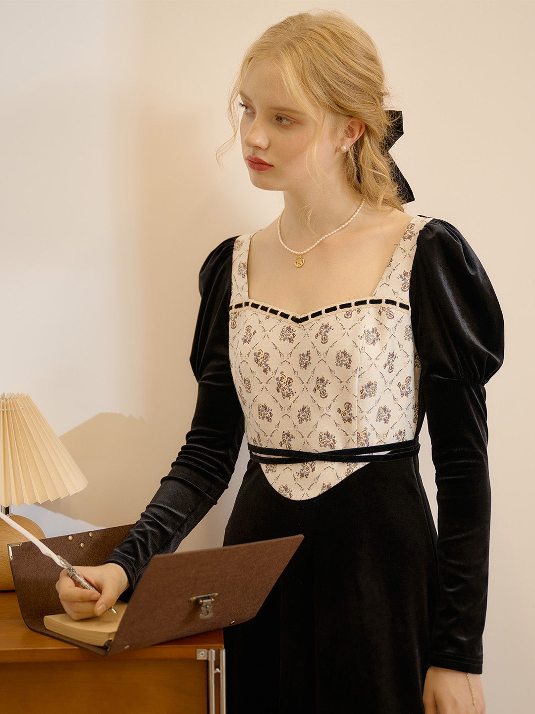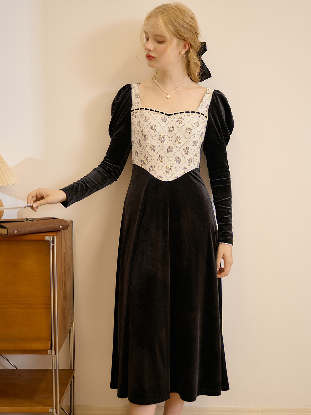Eliza Square Neck Contrast Patchwork Puff Sleeve Dress