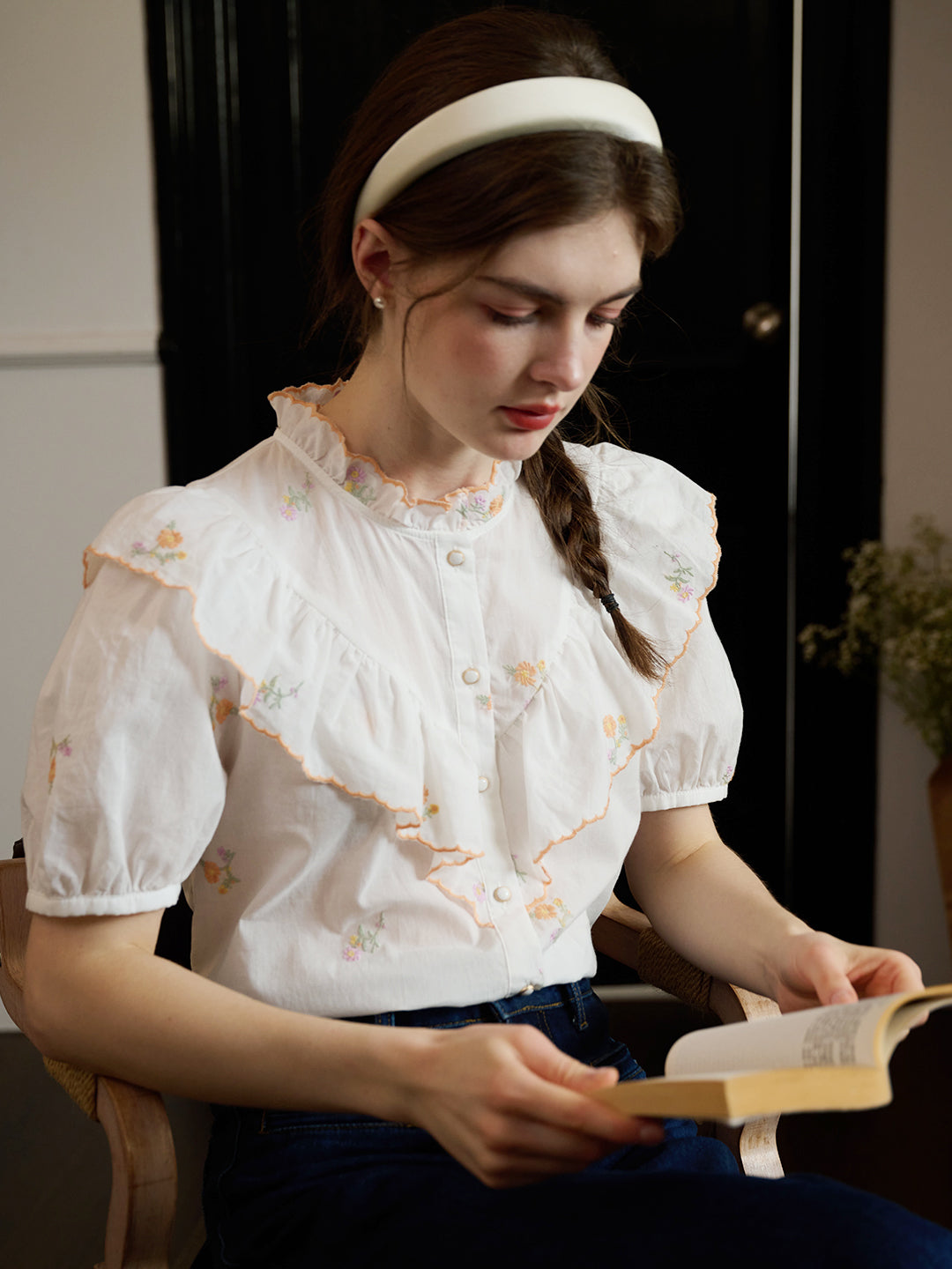 【Final Sale】Emmalyn Mock Neck Ruffle Embroidered Cotton Blouse