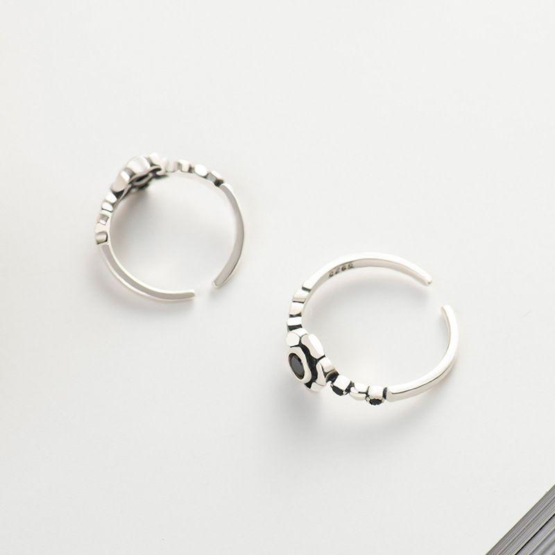 vintage black cz plum blossom flower 925 sterling silver adjustable ring