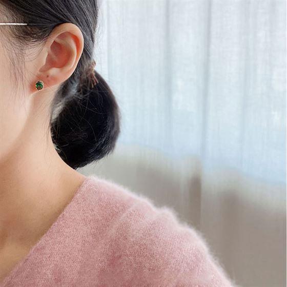 vintage cake side emerald green oval cz 925 sterling silver stud earrings