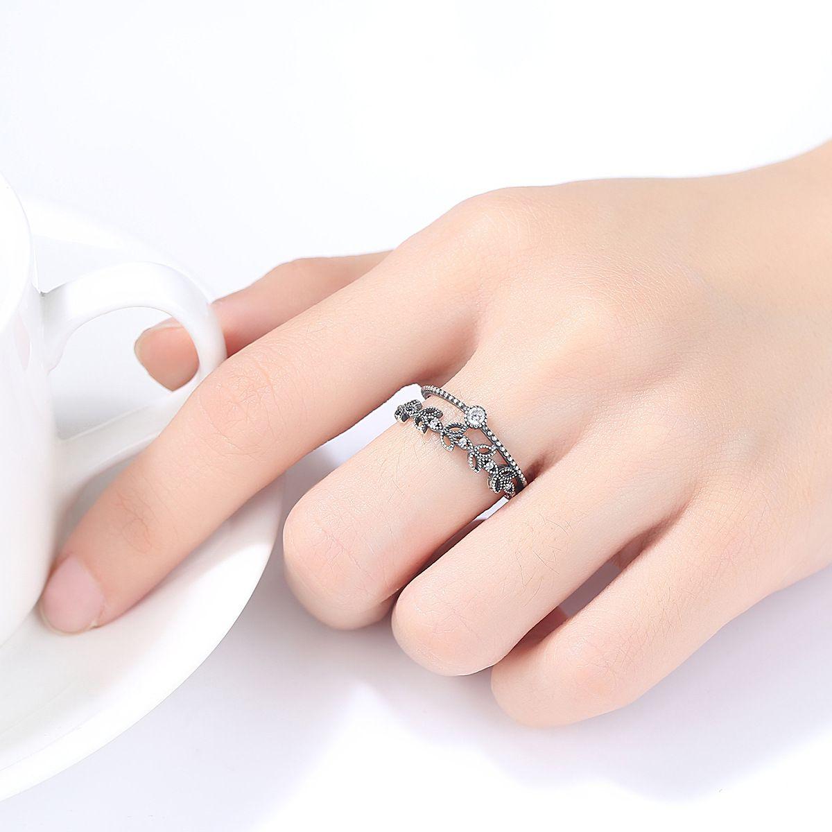 vintage cz hollow leaves double 925 sterling silver adjustable ring