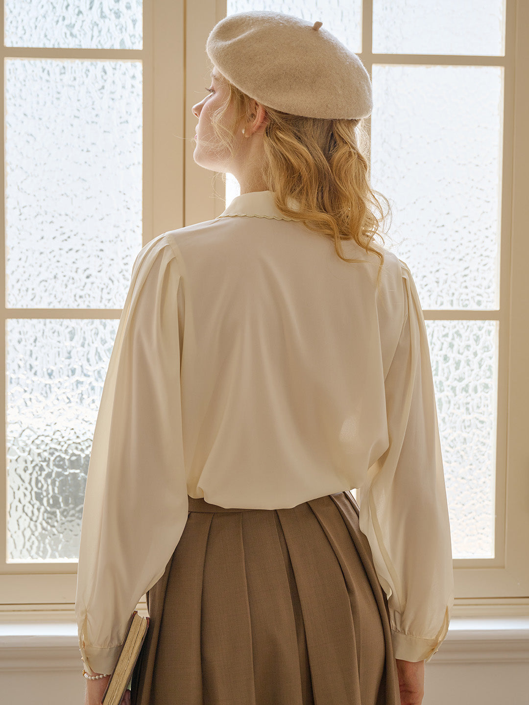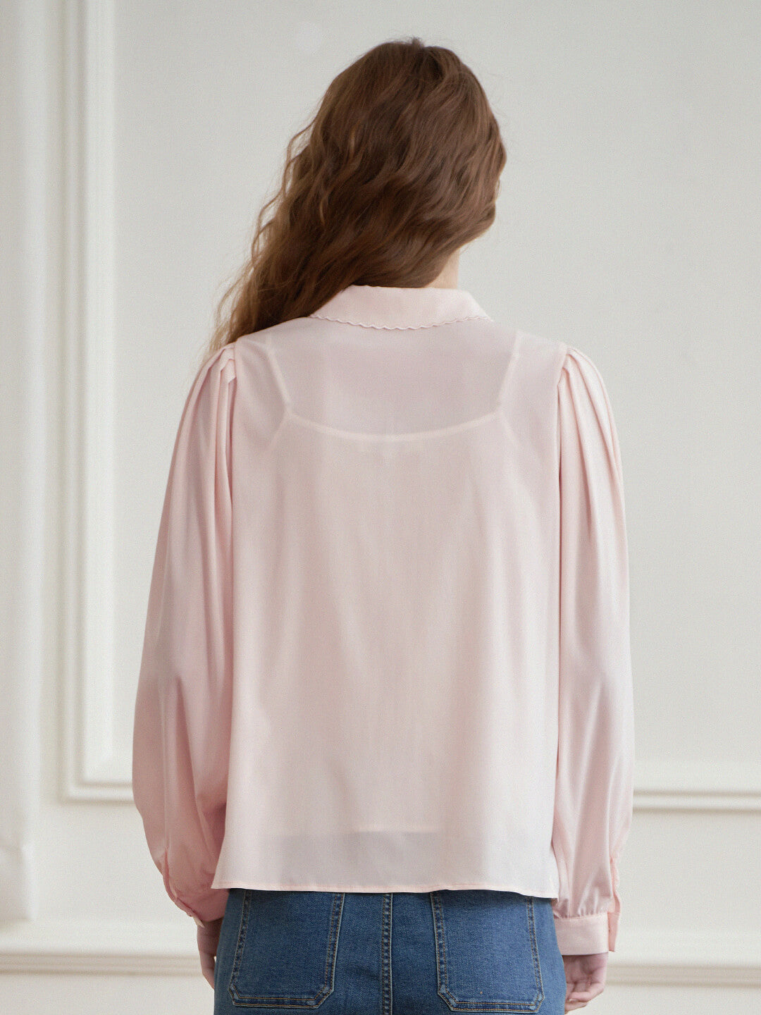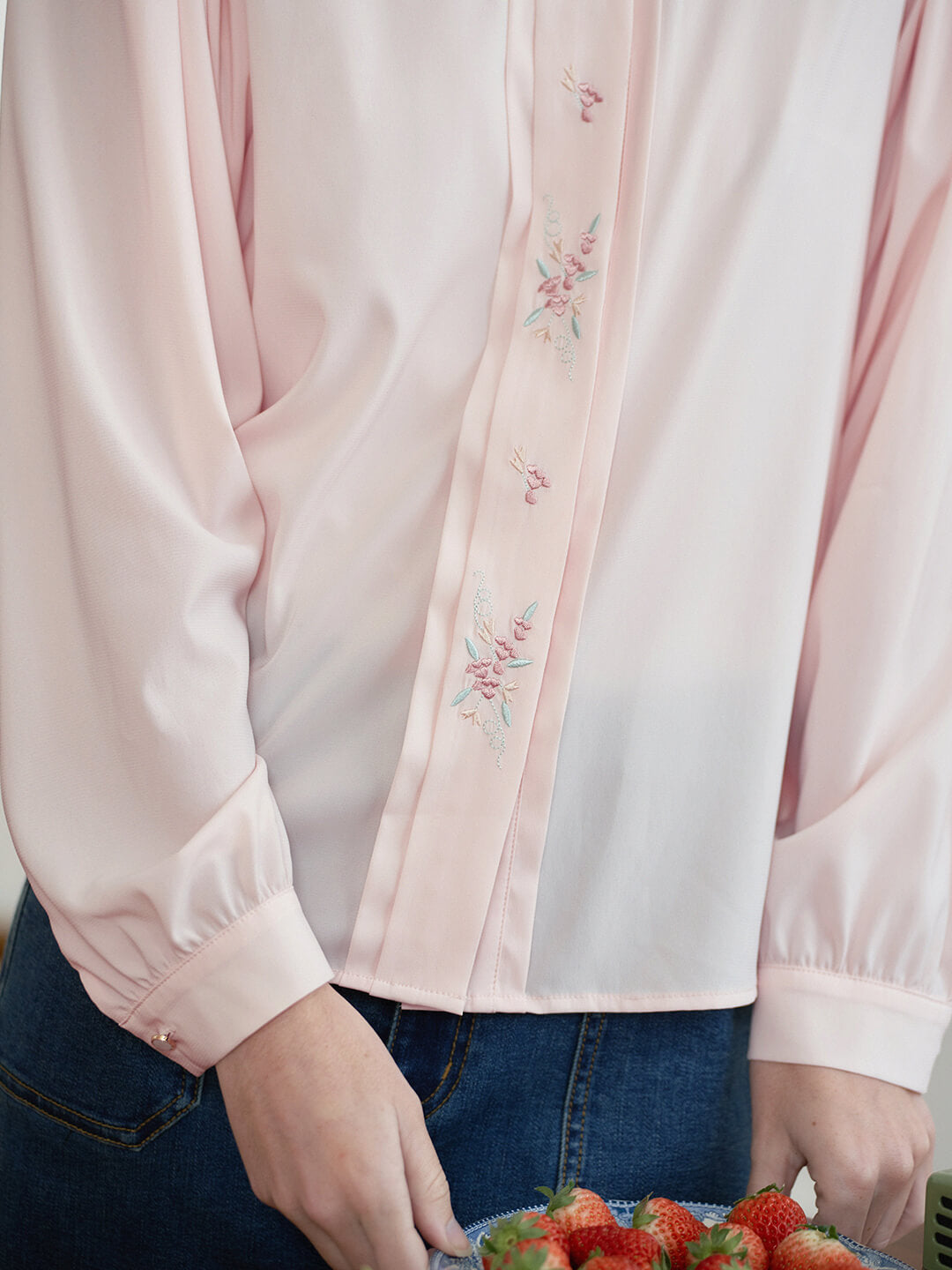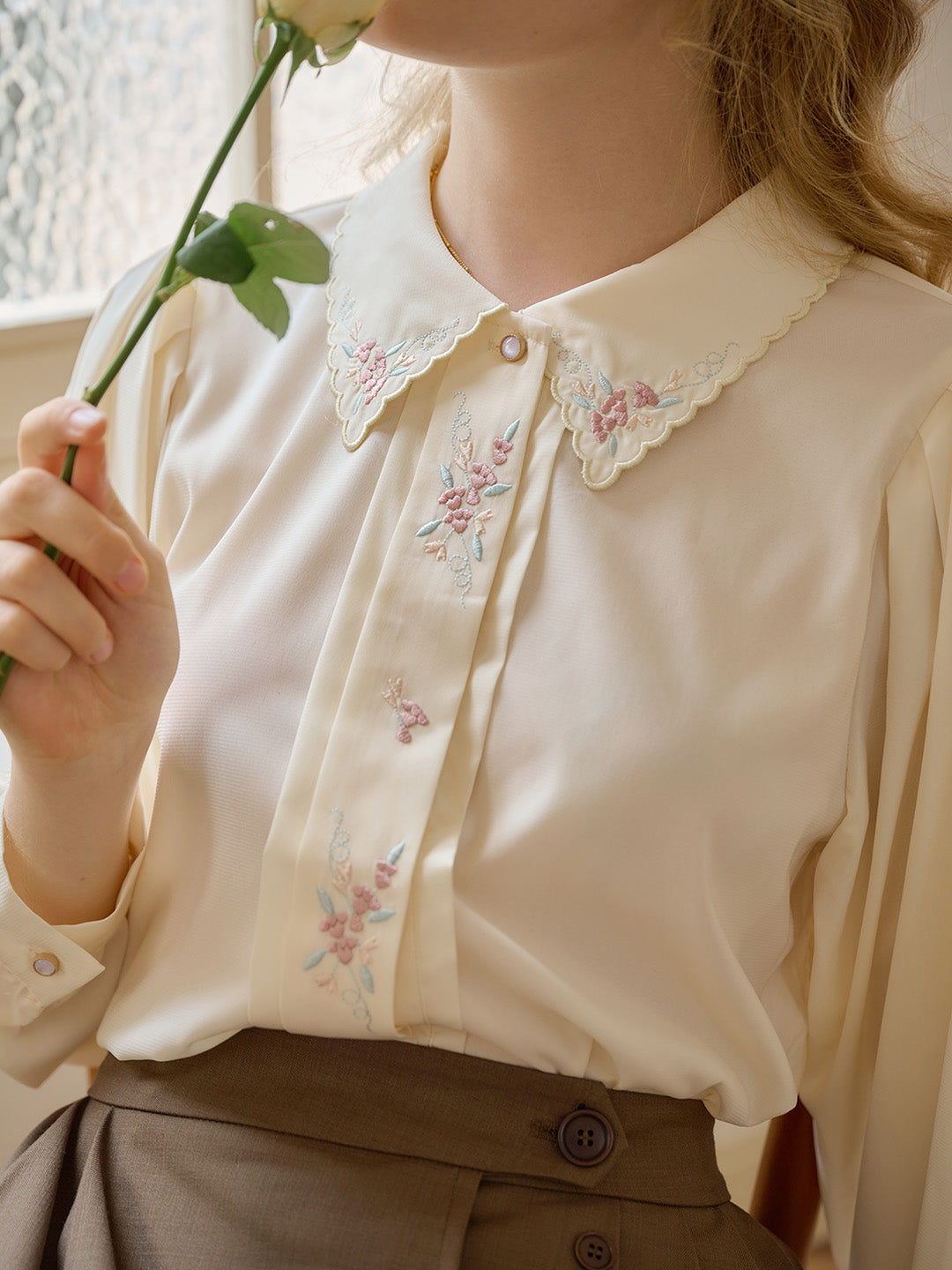 Detail | Color embroidery is integrated into the body, superimposed with a small amount of puff sleeves to improve the head-to-shoulder ratio; the small A-line loose version retains a comfortable space; the characteristic placket is pleated to add a sense of hierarchy; the preferred elastic chiffon fabric is soft to the touch and silky texture |