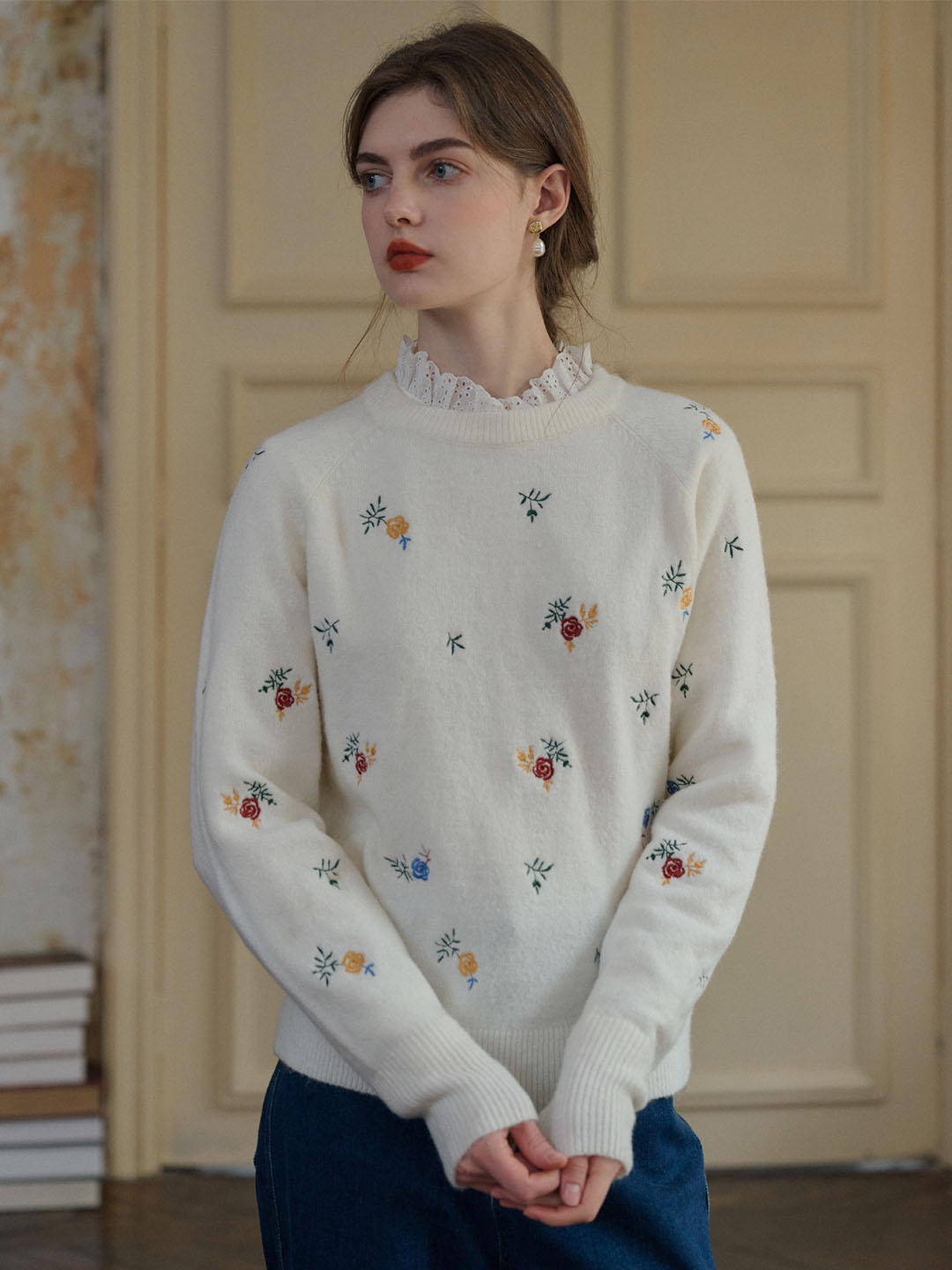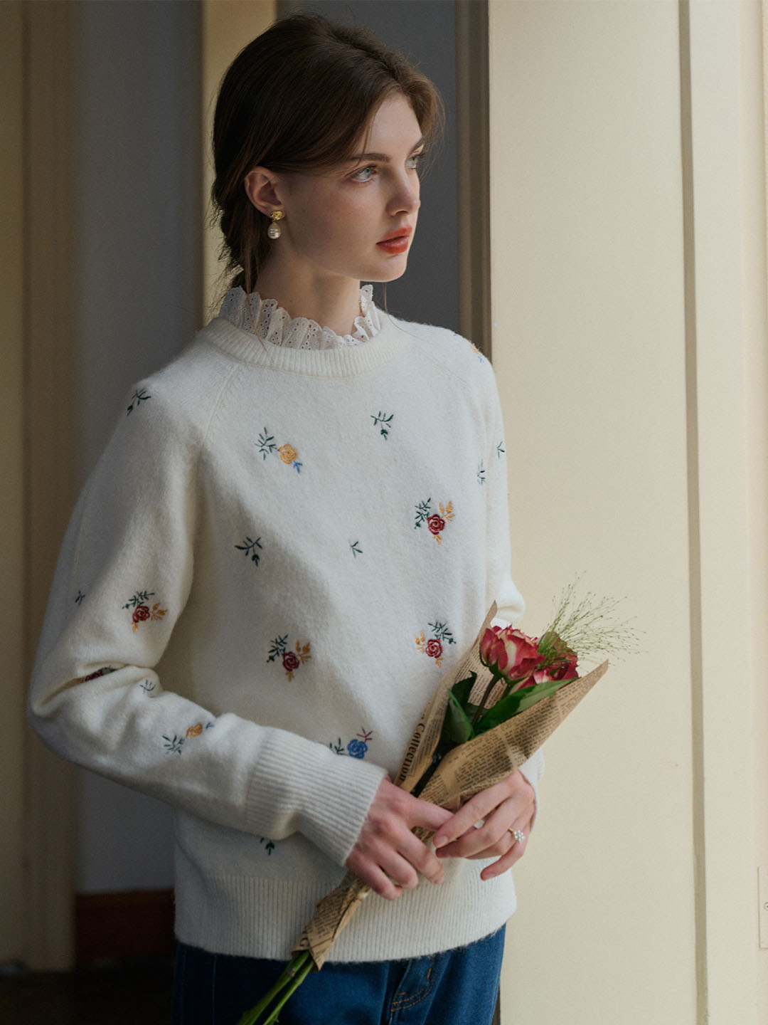 【Final Sale】Melody Floral Embroidery Raglan Sleeve Sweater