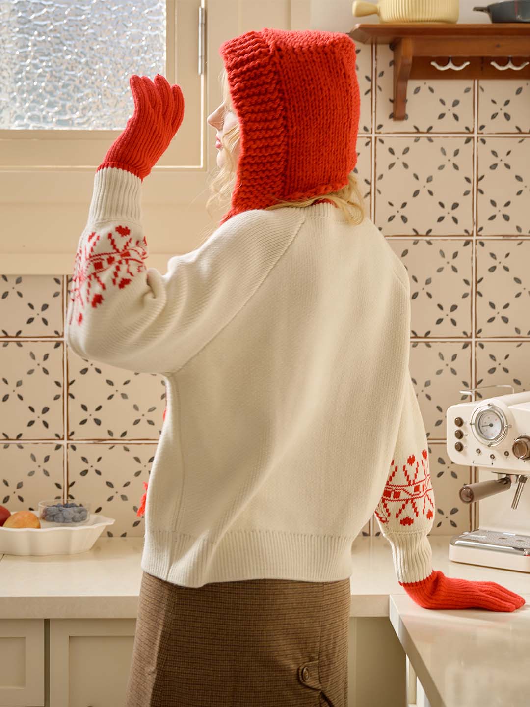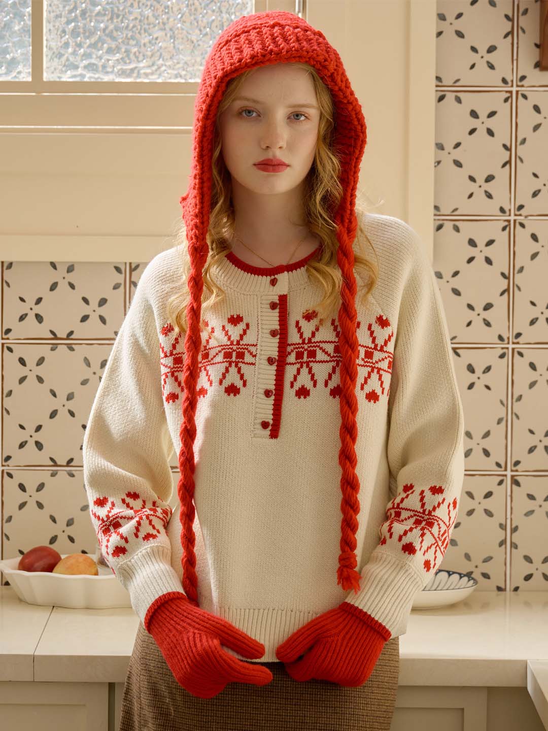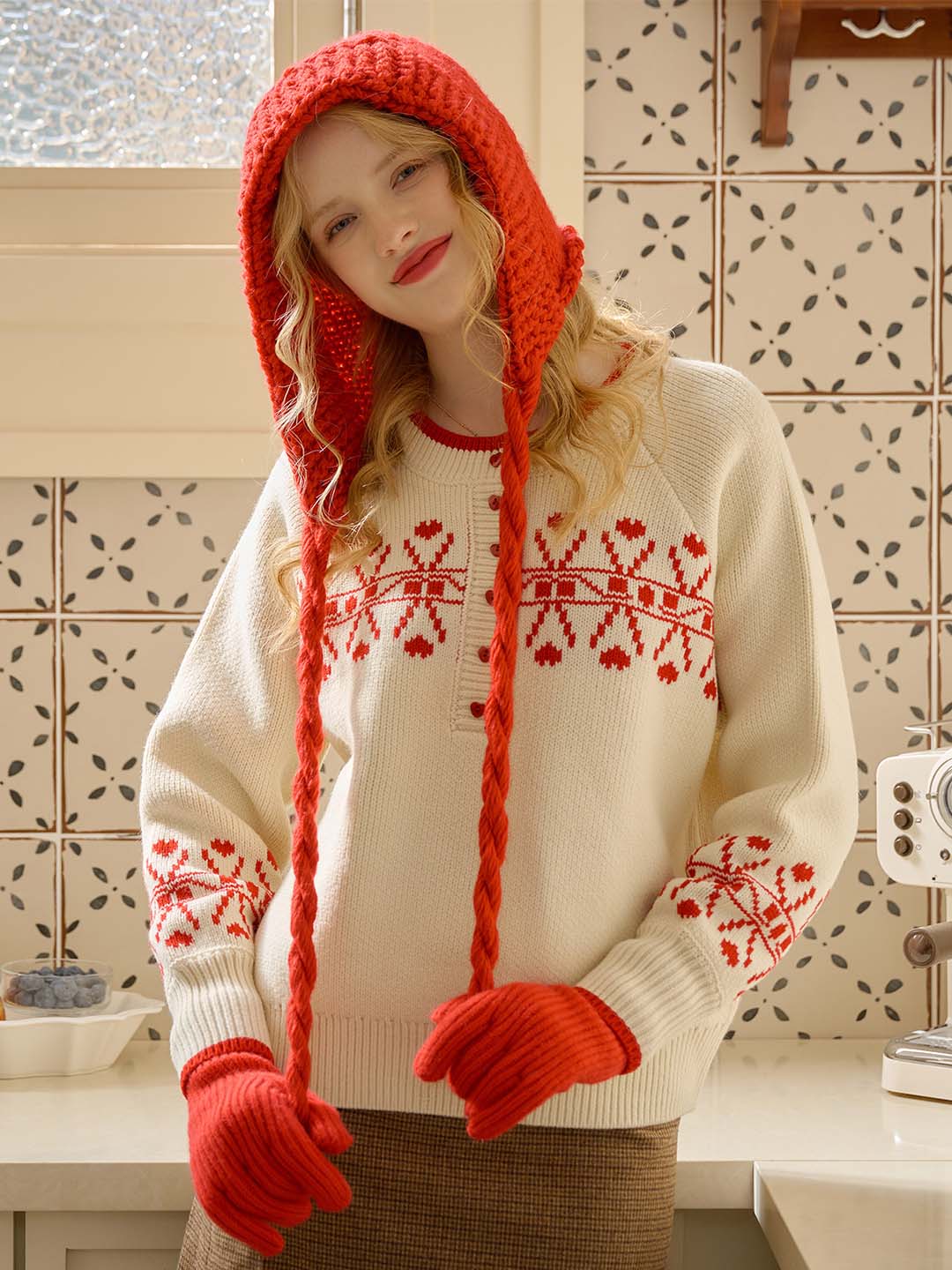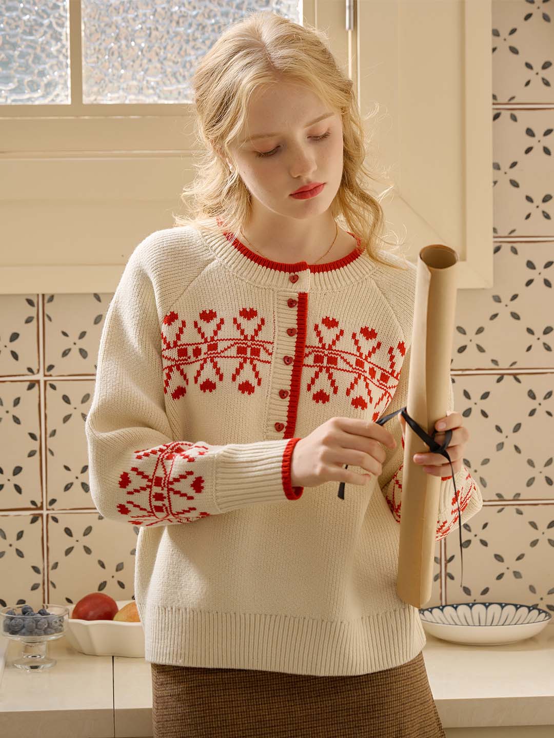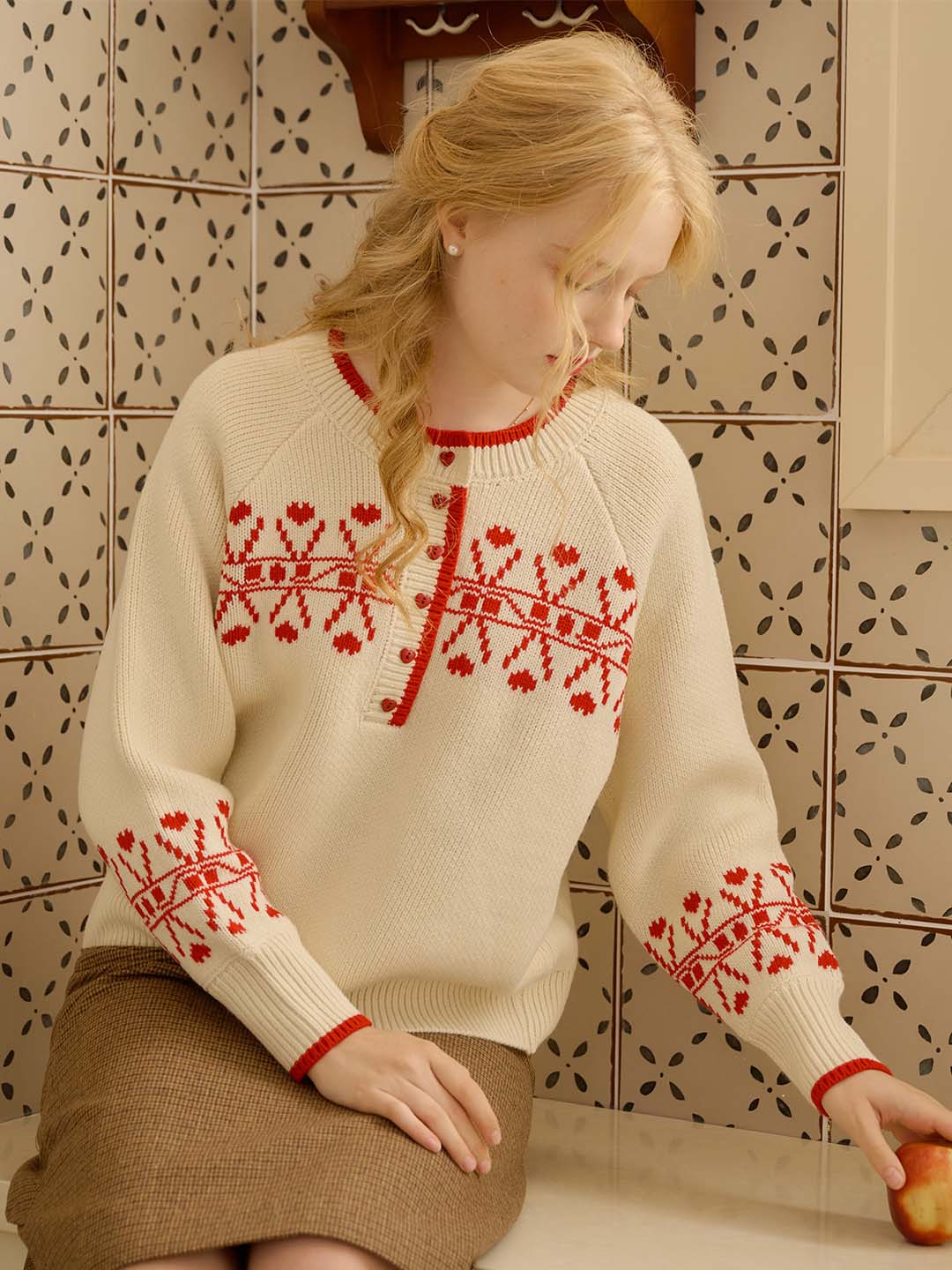 Sarah Contrast Crew Neck Pattern Sweater