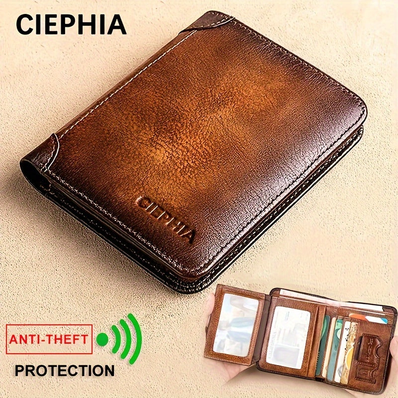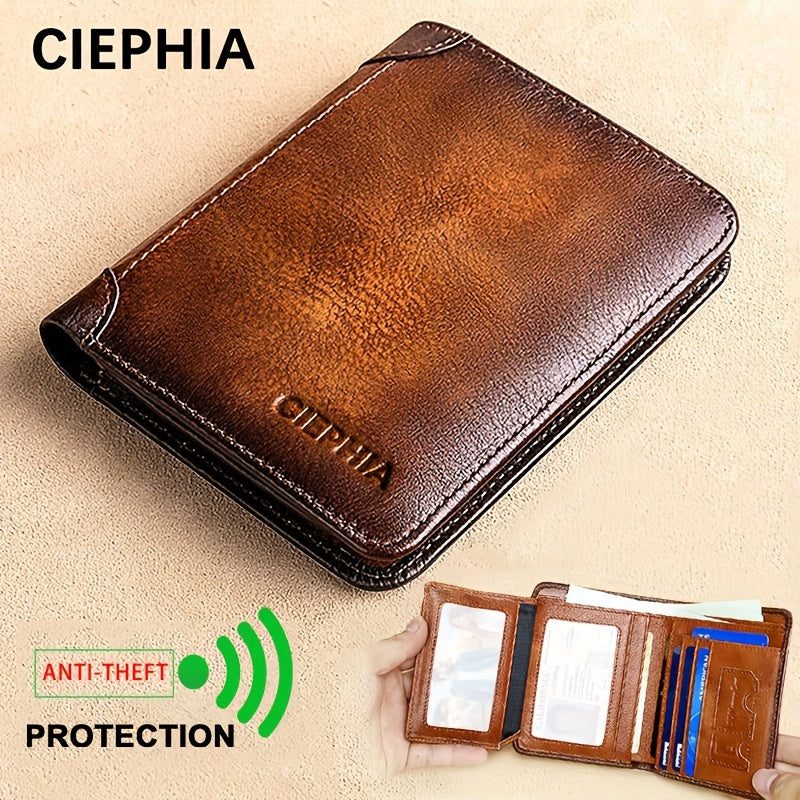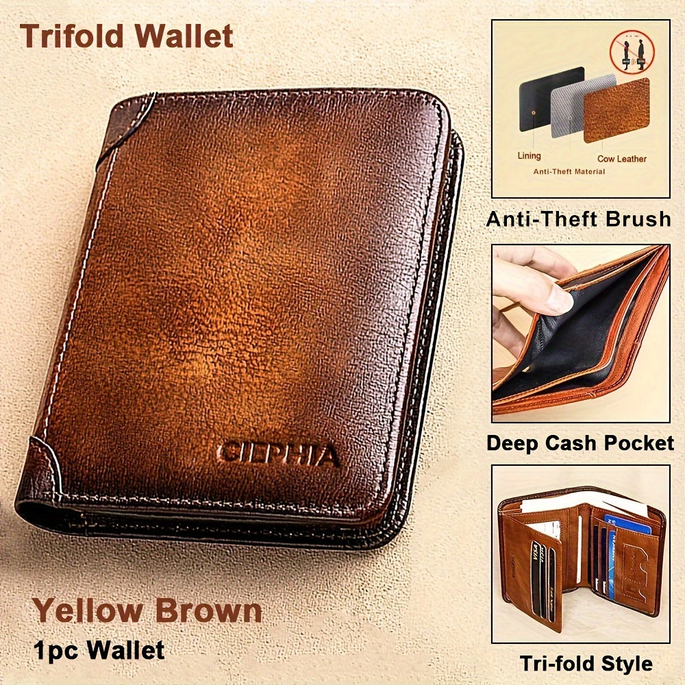 1pc Genuine Leather Rfid BlocWallets For Men, Retro Thin Short Multi-functional ID Credit Card Holder, Gifts To Men On Valentine's Day