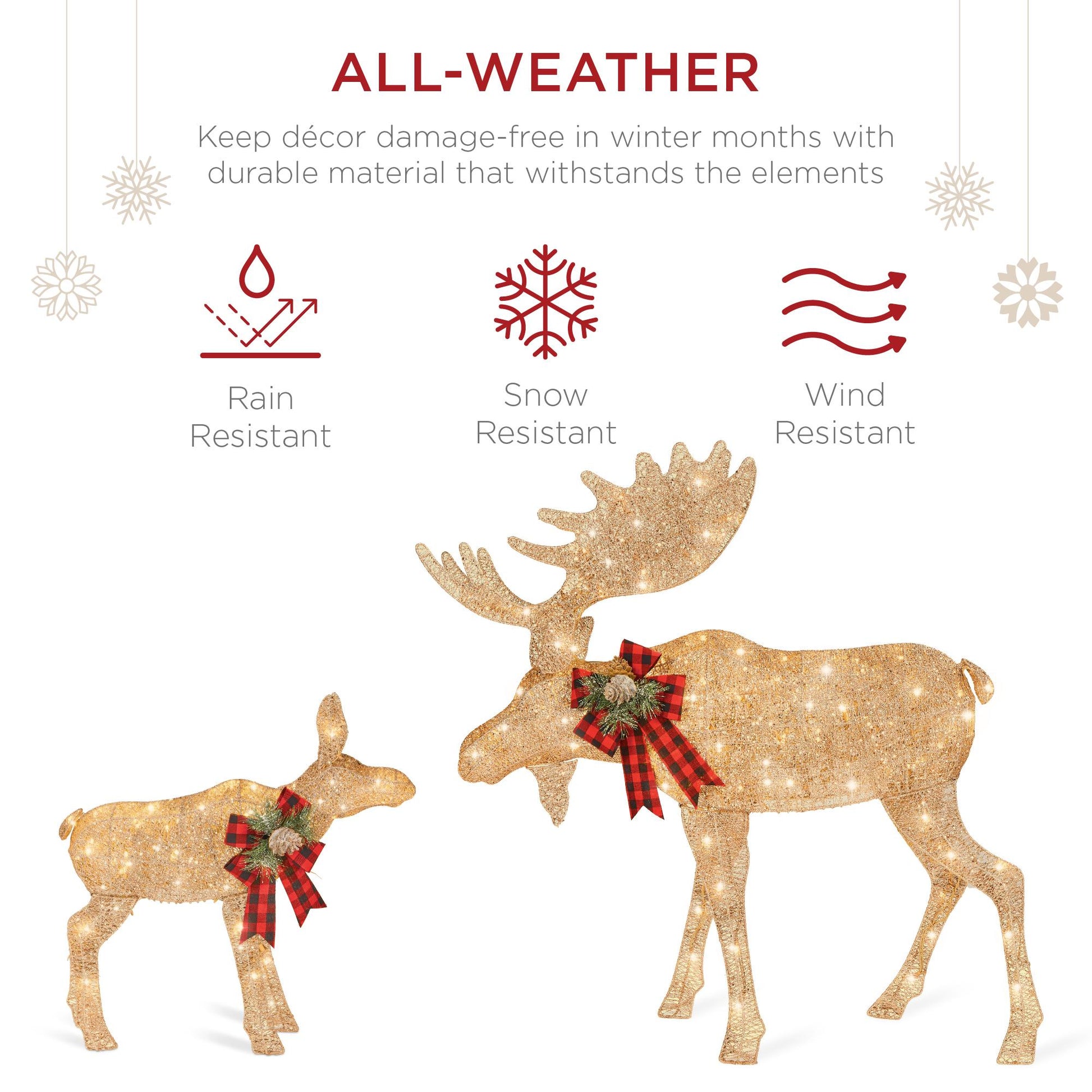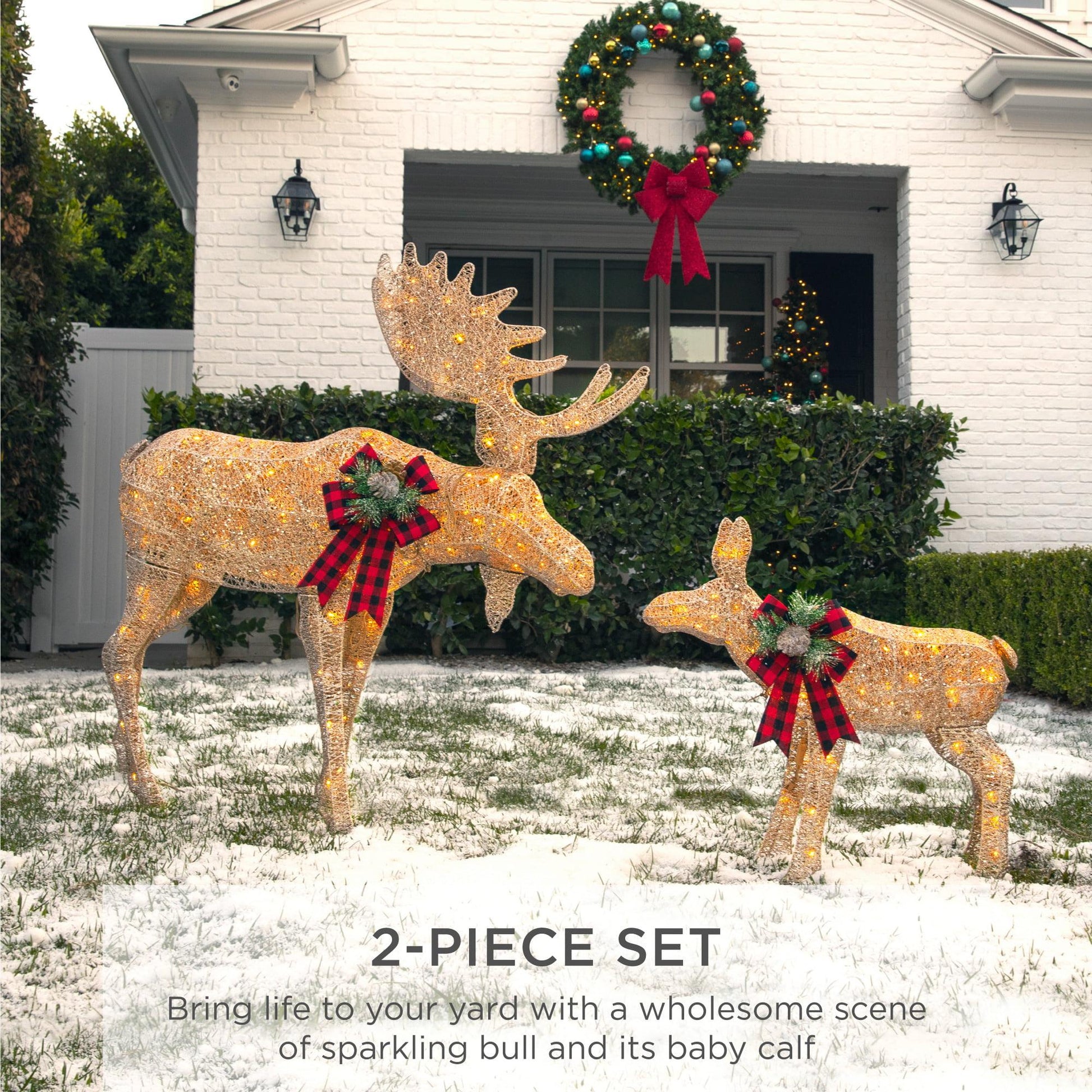 - 2-PIECE SET: Light up your front yard and celebrate the winter months with a glowing outdoor moose family consisting of an adult bull moose and its baby calf