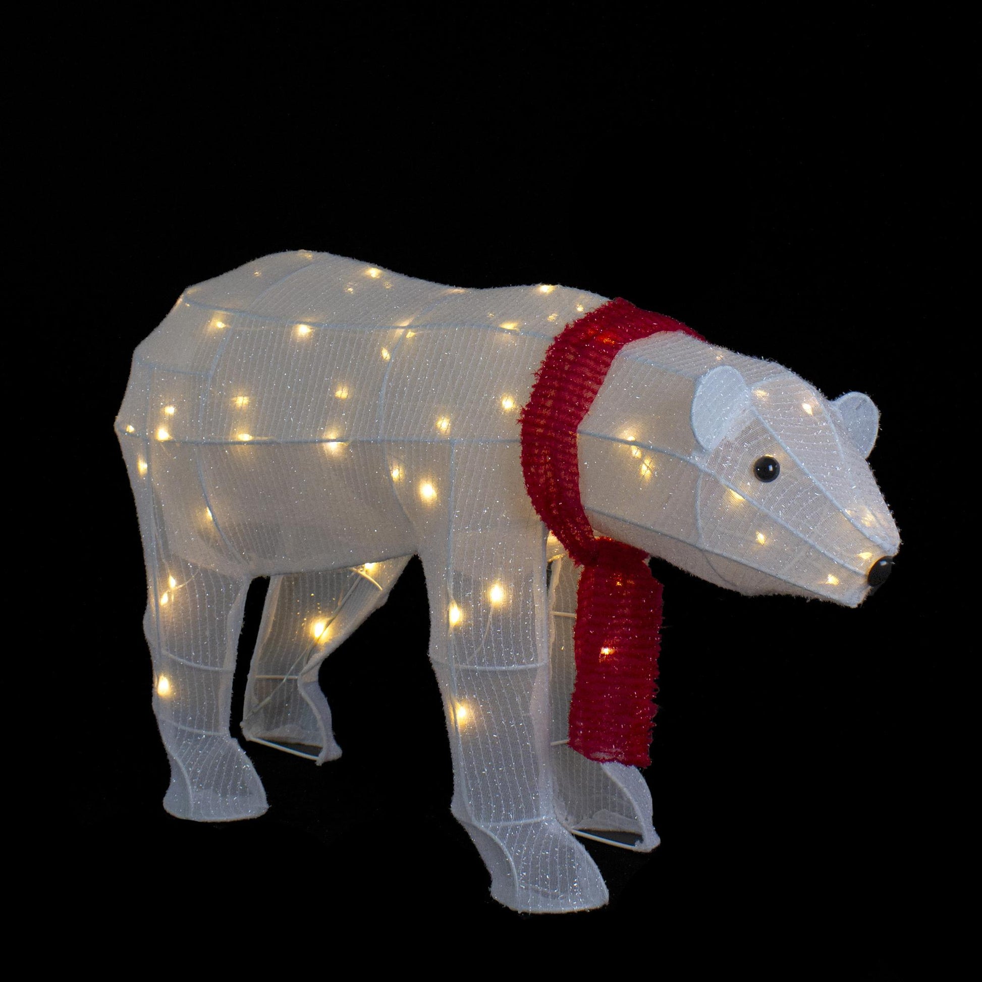 32" LED Lighted Tinsel Polar Bear Outdoor Christmas Decoration
