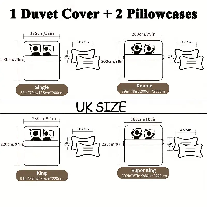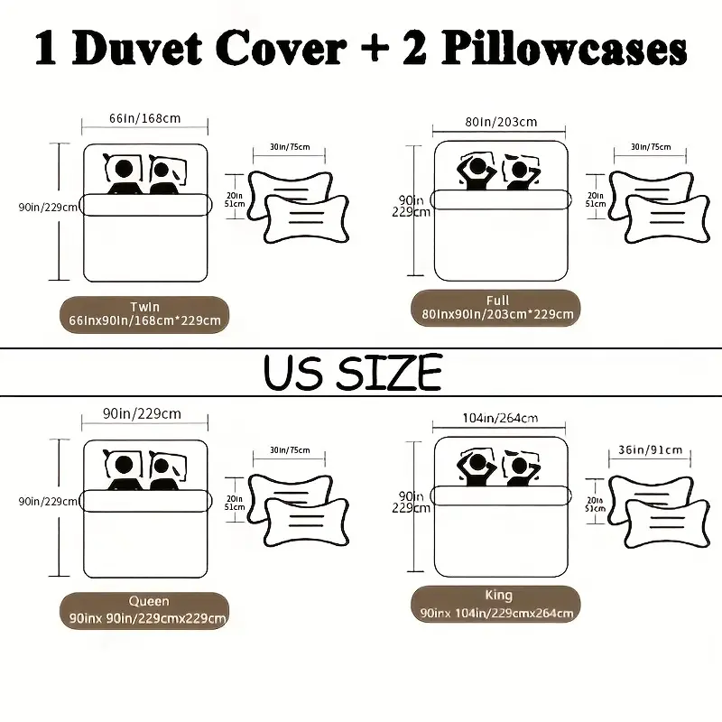 Complete Set: The 3-piece set includes a duvet cover and two pillowcases, making it a complete bedding solution for your home.