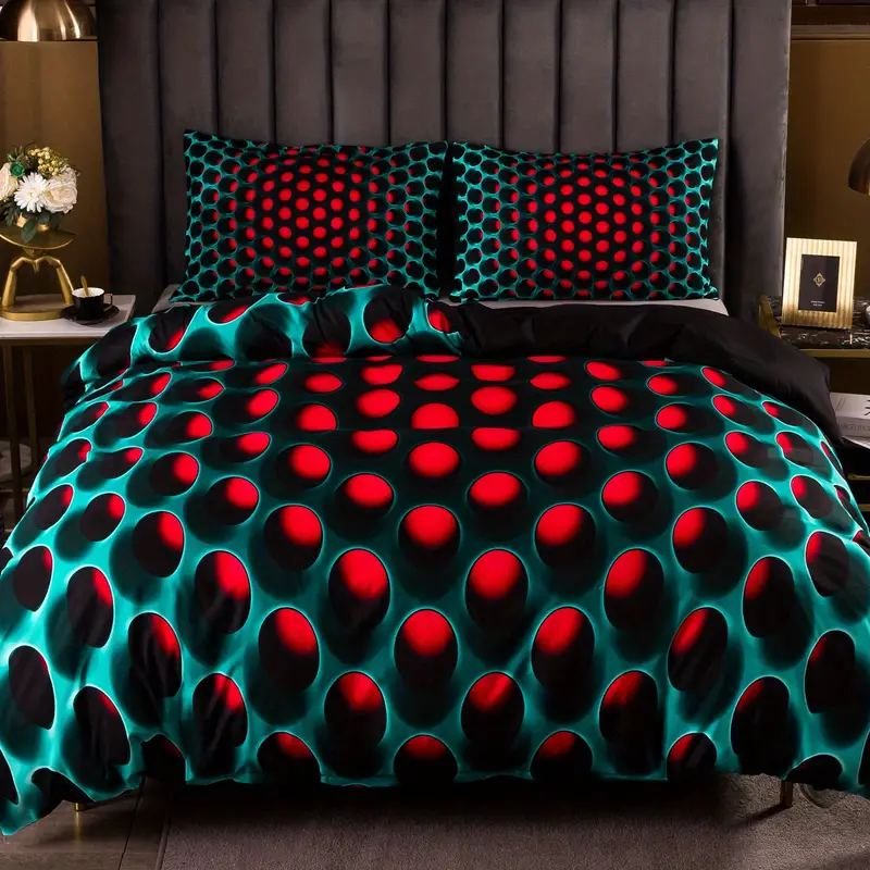 3pcs Y2K Stereoscopic Dense Holes Pattern Bedding Set, Colorful Duvet Cover Set (Without Quilt)