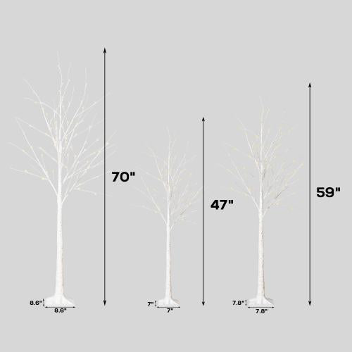 SEGMART set of The Holiday Aisle LED Birch Tree comes with 4FT, 5FT, and 6FT, plug-in to use. It brings nature's beauty into your home. The warm white LED light and natural white stems combine for the perfect accent in your yard, front door, or living room for year-round decor. Adopting superior PVC material as well as fine workmanship, this tree is of great durability. It is also a bright spot in home decorating for Christmas night. Come on, do not miss this valued Snowflake Christmas tree. Note: The 3 piece Christmas tree has 2 shipping boxes and the delivery time may be different. If you only receive 1 box, please wait another 1-2 days.