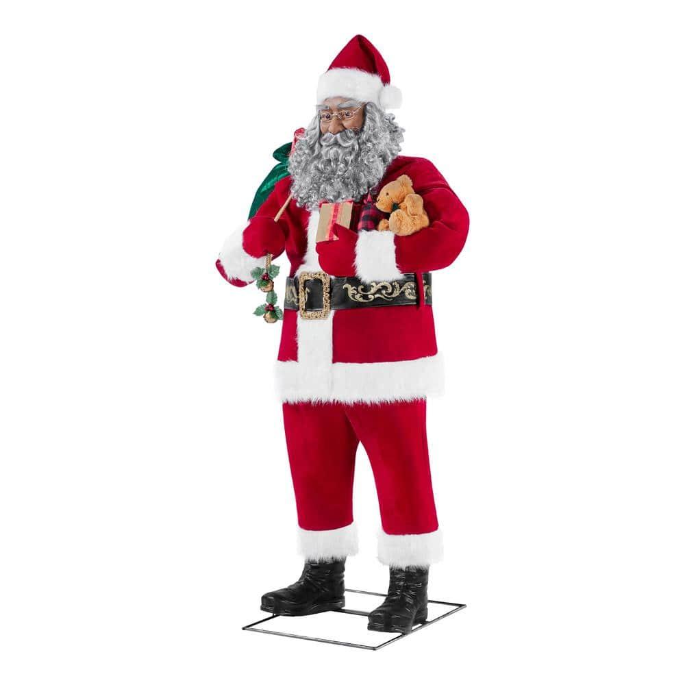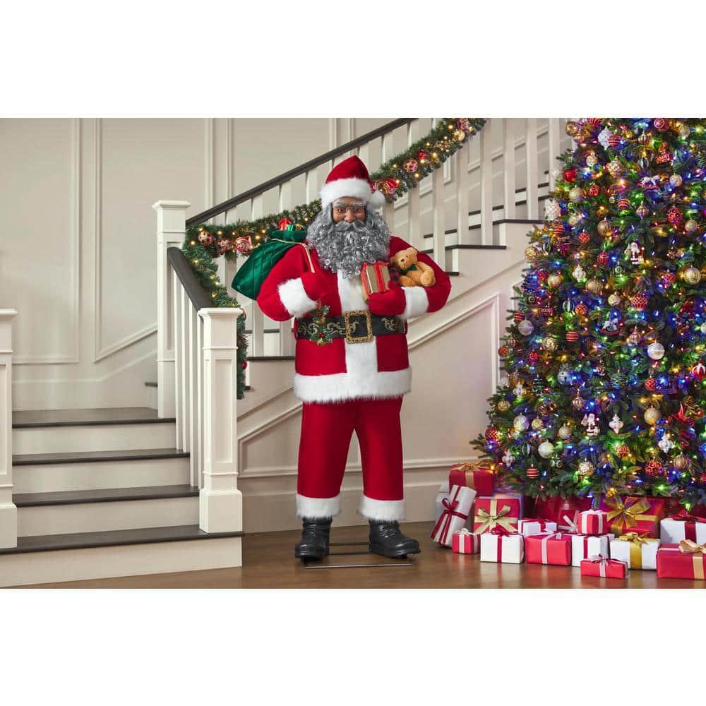 Brighten your home for holidays with this animated Santa greeter decorative figure. charming Santa character stands at 6 feet and sports a full beard for a realistically jolly appearance, while adapter-powered and motion-activated delights your passing friends and family with merry movements, seasonal stories and Christmas carols throughout holidays. Garbed in luxurious fabrics, this animated Santa greeter decorative figure features a plush sack and gifts to supply your entryway or living room with a touch of traditional joy.