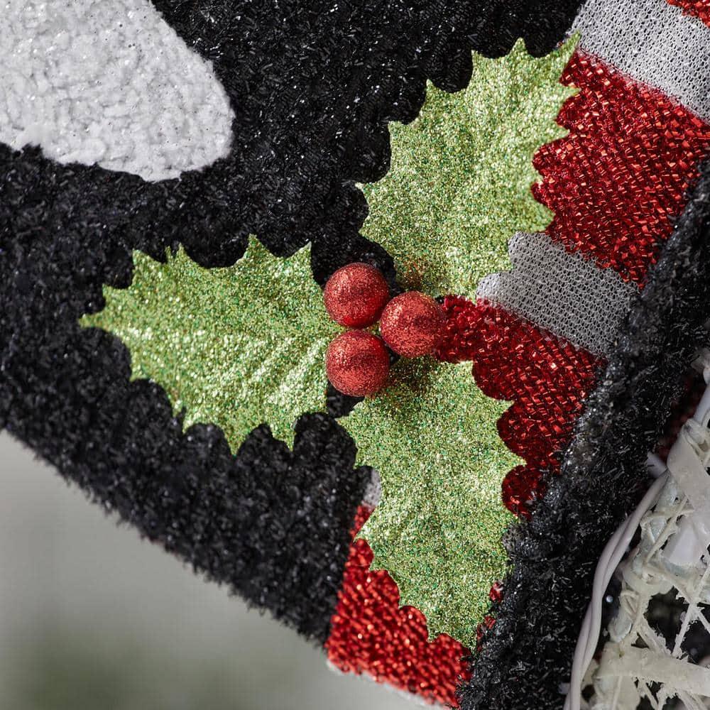 Dress up your lawn or garden for holidays with this snowman yard sculpture. 156 warm white LEDs stay cool to touch while illuminating your outdoor space, while metal frame and PVC construction offer enduring quality. Minimal assembly is required for hassle-setup, and 72-inch high showcases an endearing snowball fight for festive fun. This snowman yard sculpture is rated for both indoor and outdoor use, providing versatile decorating options.