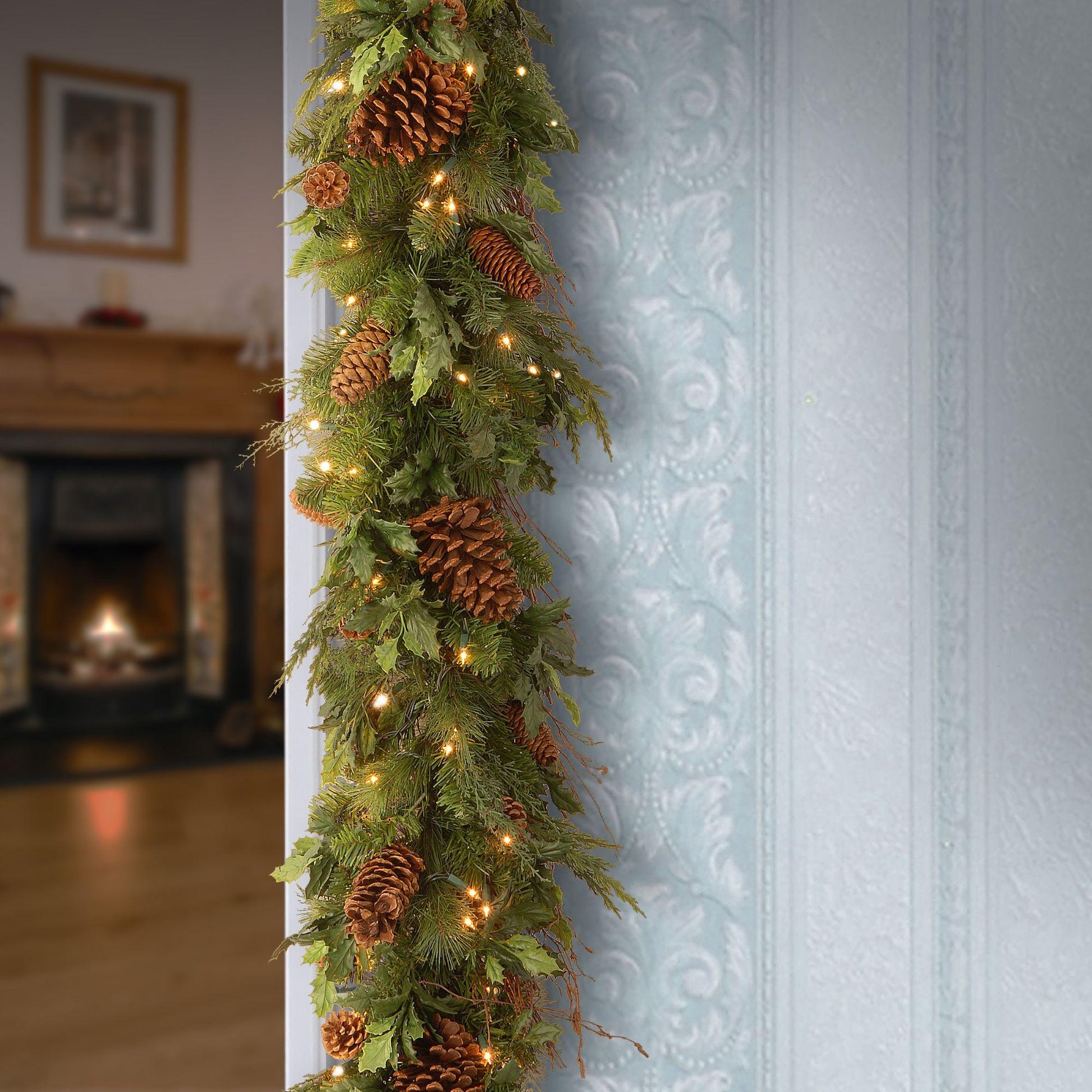 6' x 12" Pre-Lit Decorative Collection Juniper Mix Pine Artificial Christmas Garland - Warm white LED Lights