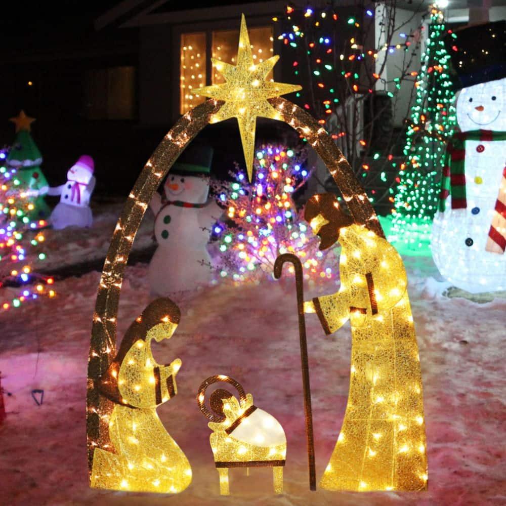 - Vivid characters: nativity scene has 150 LED lights with warm white light, and characters are all woven from fabrics, which are definitely vivid. You can make out exactly what you're looat when it's lit up. Seeing such a gorgeous and charming light up nativity sets in cold winter day, both you and passers-by will be warmed.