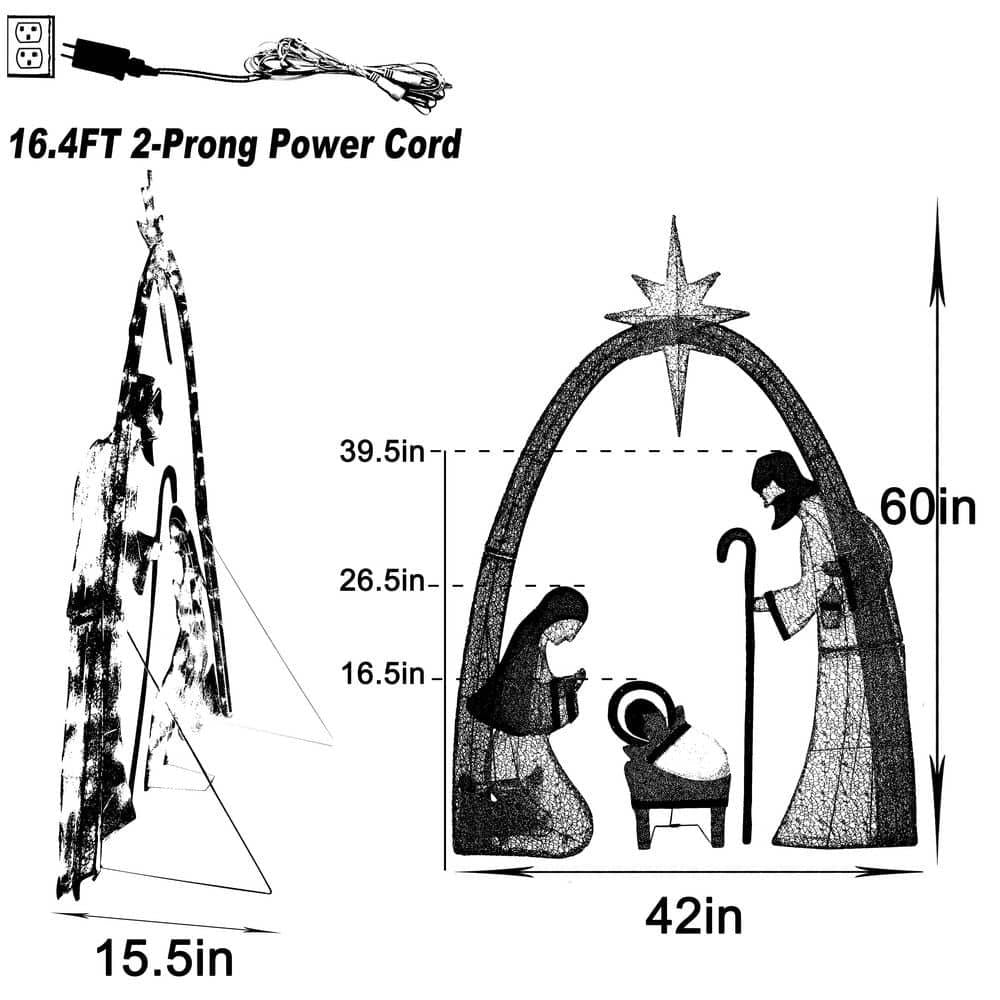 60 in. Nativity Scene Christmas Yard Decorations with LED lights, Gold