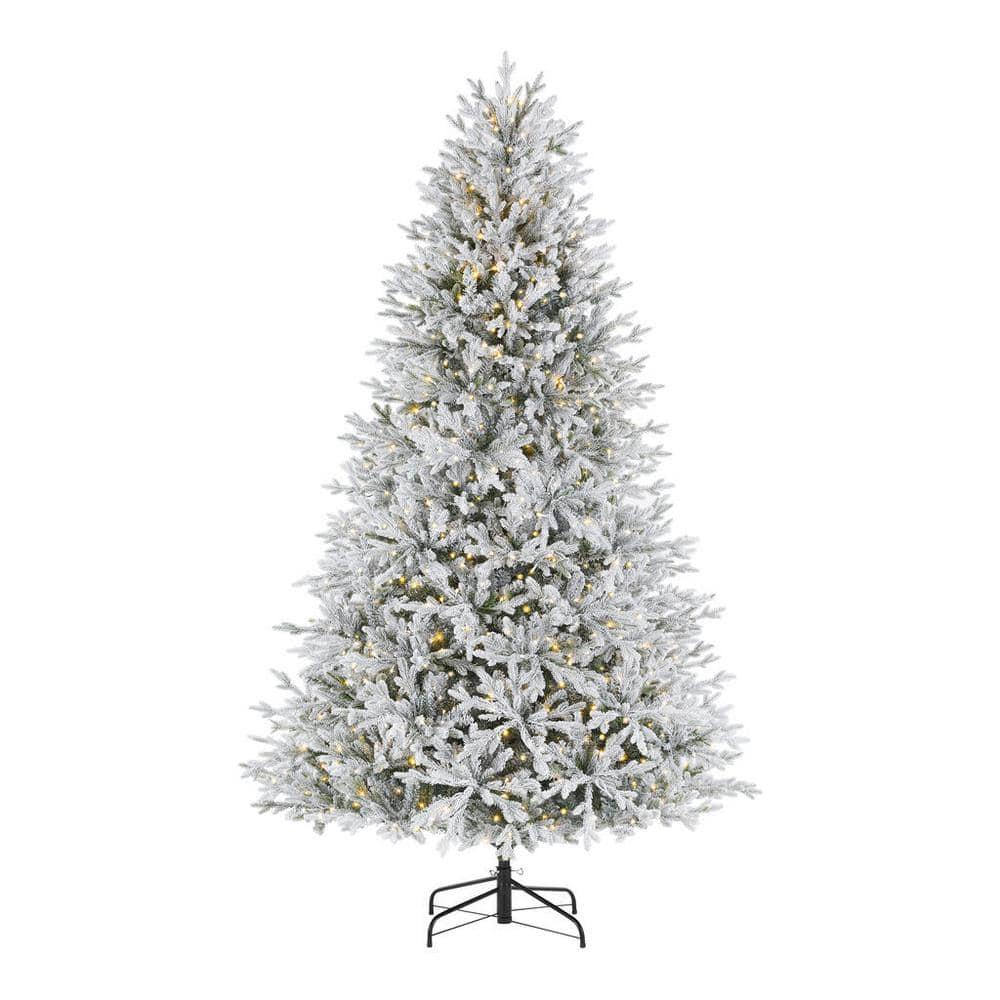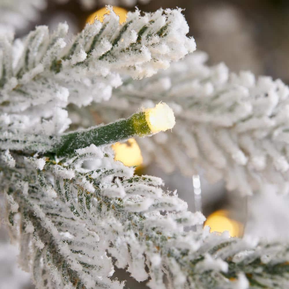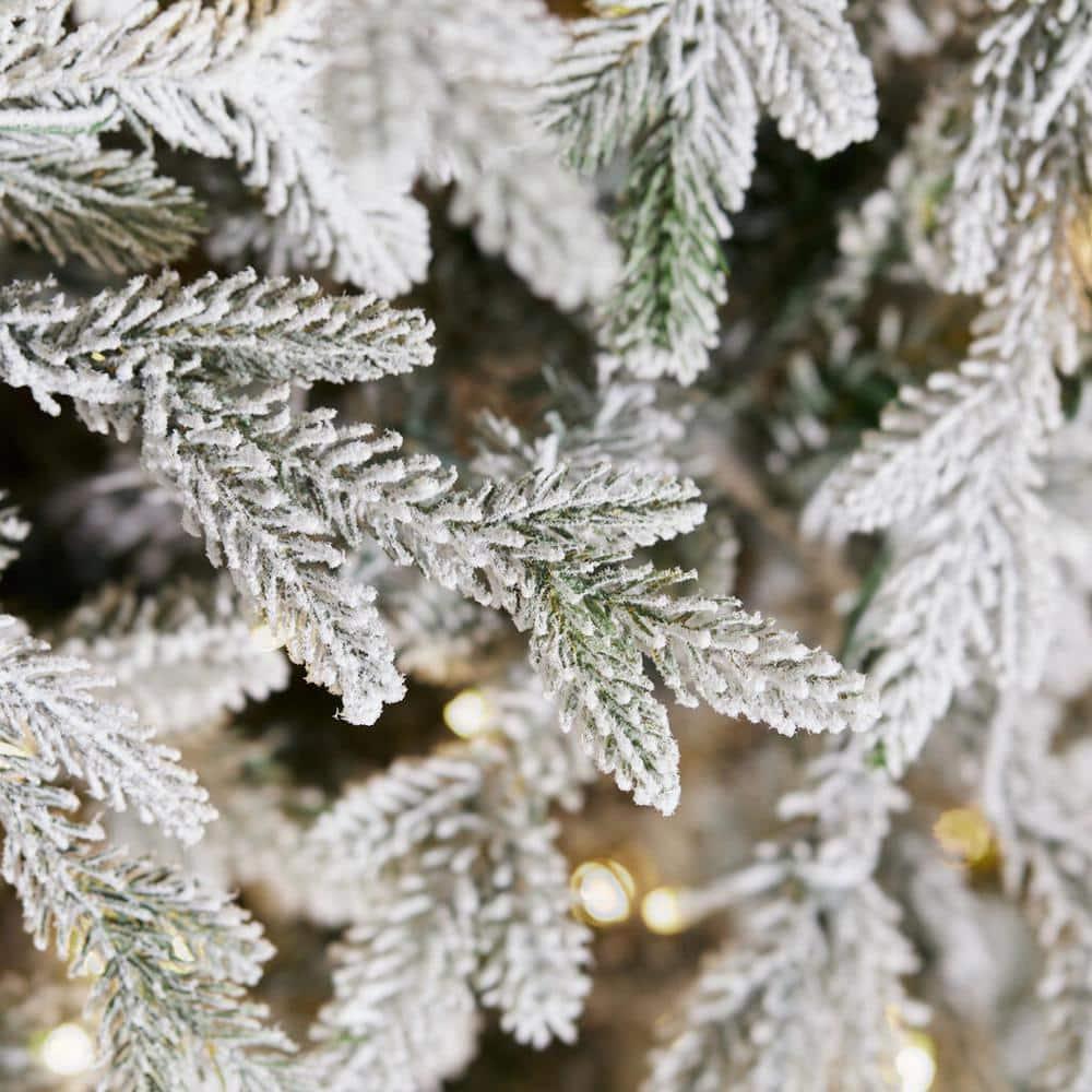 Slip into a winter wonderland with this Kenpre-lit micro dot LED artificial Fraser fir tree. warm white LEDs cast a radiant sparkle with and steady-on modes for a shimmering scene, while 4,898 branch tips boast a full appearance with plenty of space for your favorite trimmings. Featuring flocked tips, this Kenpre-lit micro dot LED artificial Fraser fir tree creates a stunning snowy setting for your holiday gatherings.