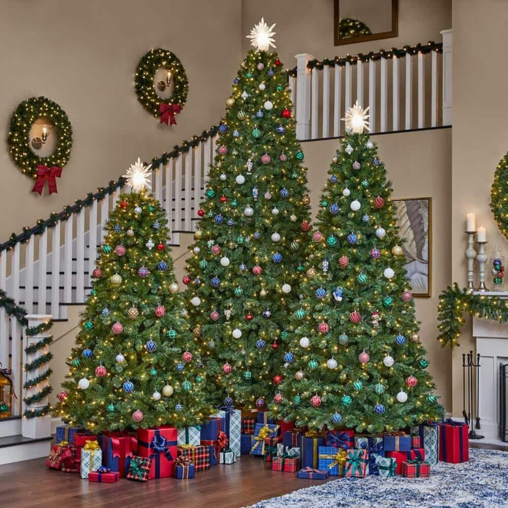Invite holiday cheer to your home with this 7.5-foot Wesley long-needle pine Christmas tree. 550 color-changing LED lights offer brilliant long-lasting illumination, while 1,342 lush evergreen tips provide ample room for your s and ornaments for a full appearance. A hinged-branch and set functionality allow easy setup. This 7.5-foot Wesley long-needle pine Christmas tree includes a durable folding metal stand for sturdy support and hassle-assembly, and remote control supports easy operation.