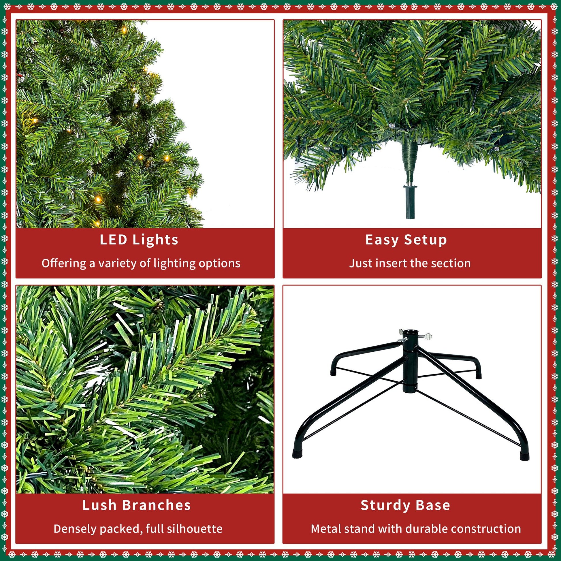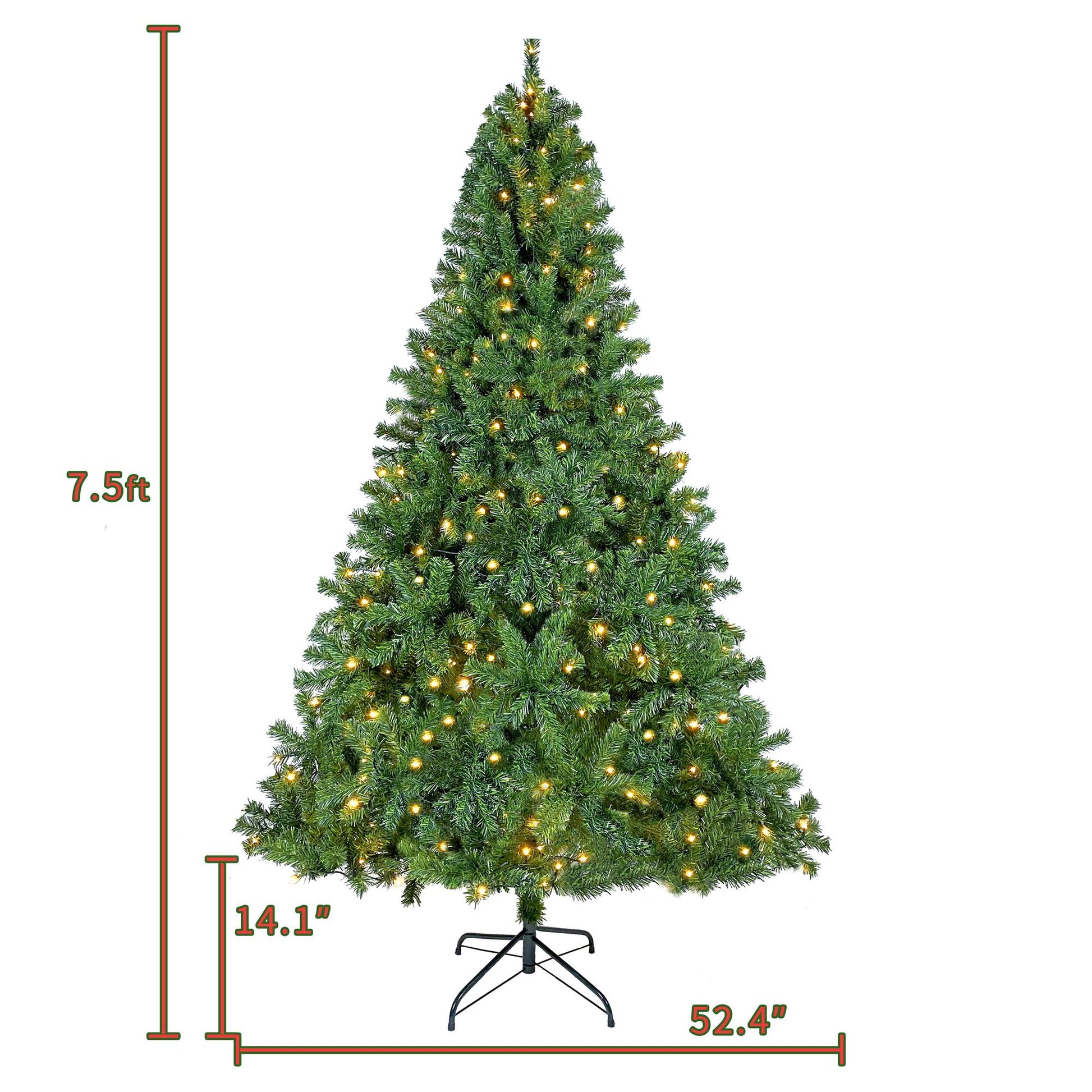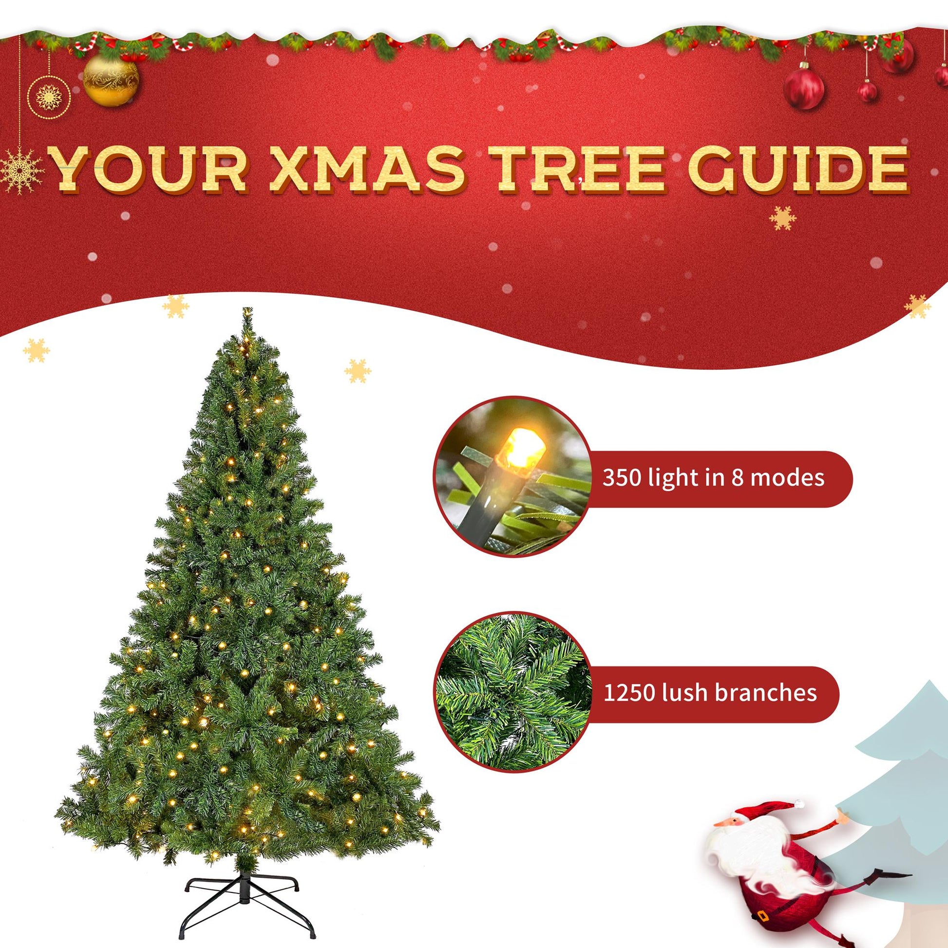 7.5ft Prelit Christmas Tree, Artificial Christmas Tree with 350 Warm White Lights and Metal Stand, 1250 Branch Tips Green Christmas Tree for Indoor Outdoor Home Holiday Decoration, TE1151