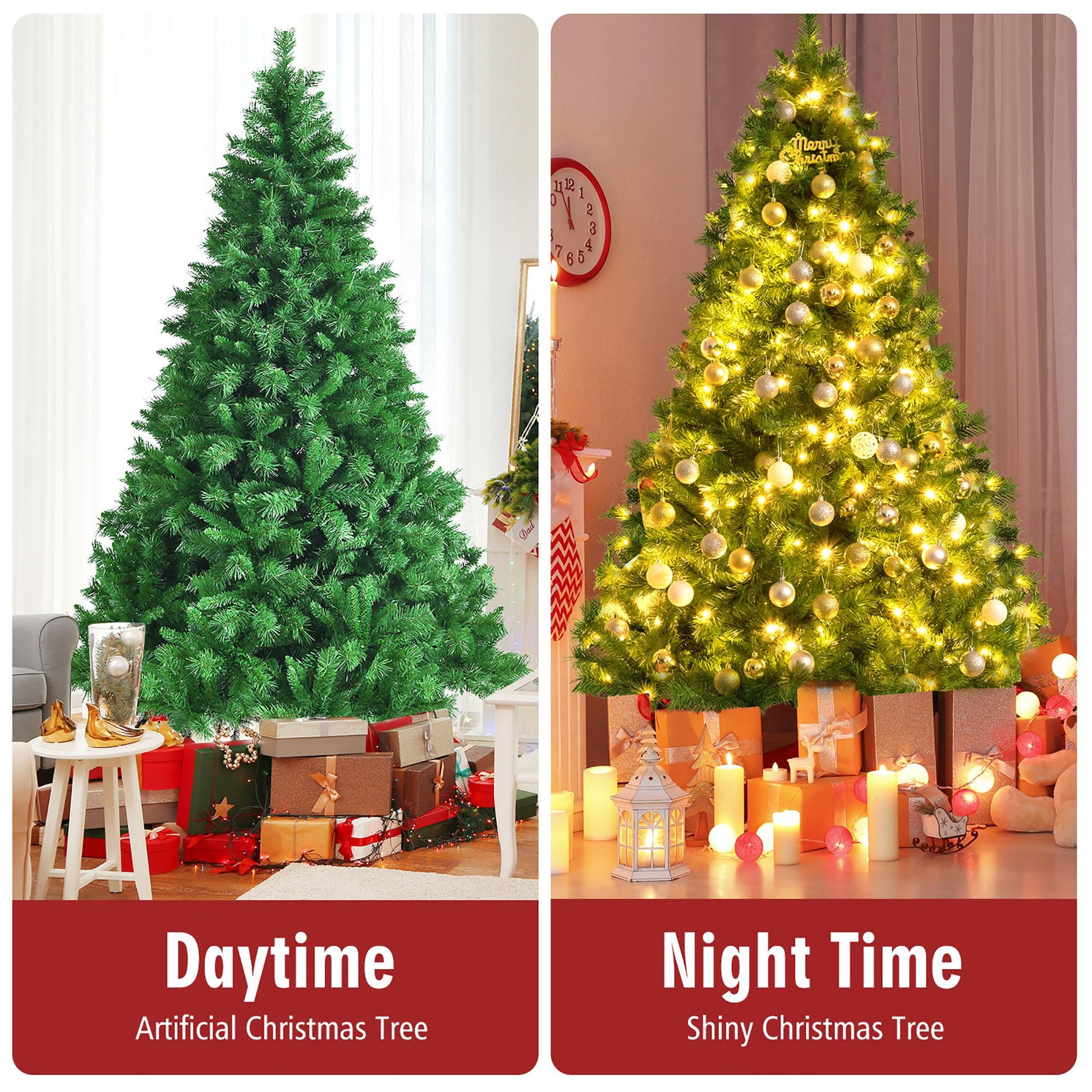 - Eye-Catching Addition to Occasions in Christmas: Whether being placed in hotel lobby or living room in your house, the flourishing pre-lit Christmas tree will be a perfect decoration. It will enchant your family and friends, while spreading the Christmas spirit to let you get into such joyful atmosphere, share happiness and bless good luck.