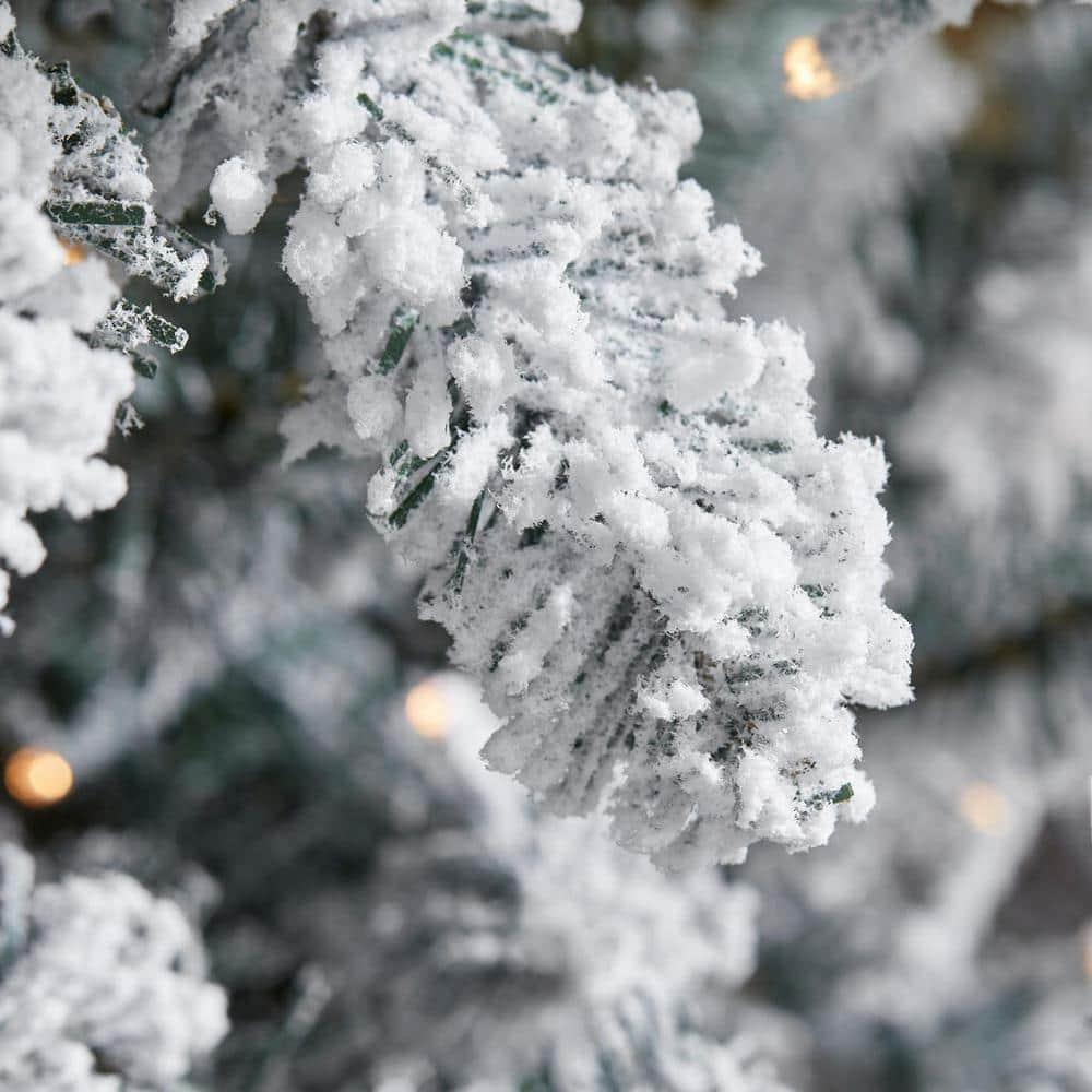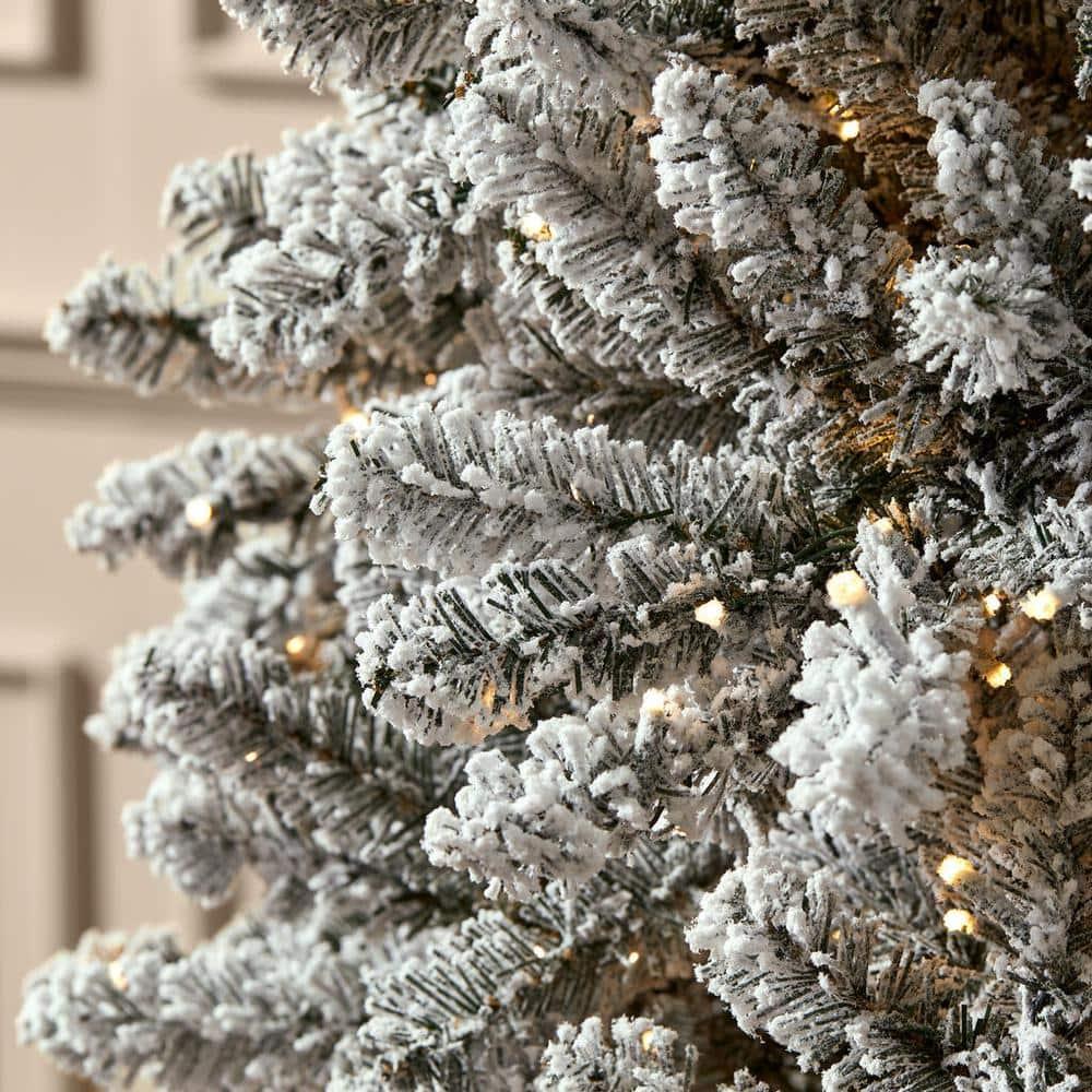 - Flocked fir pre-lit artificial Christmas tree evokes cheer and warmth