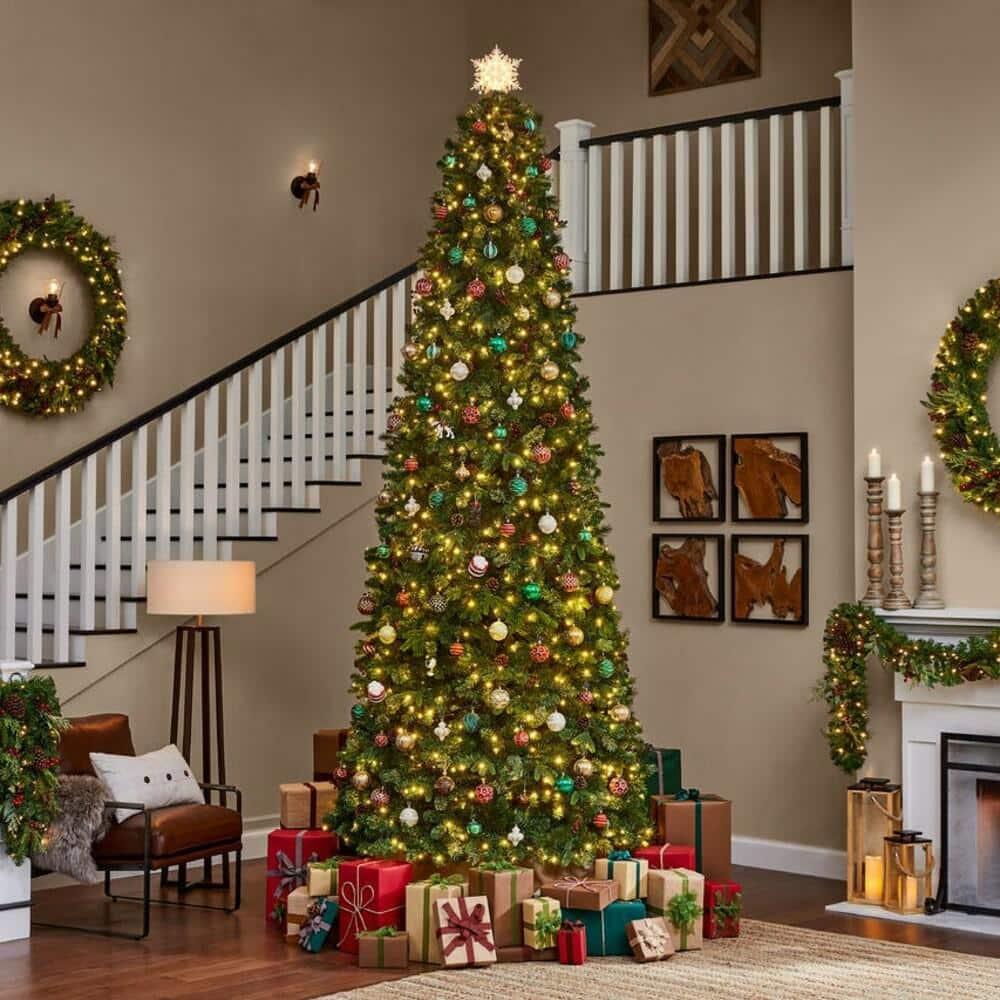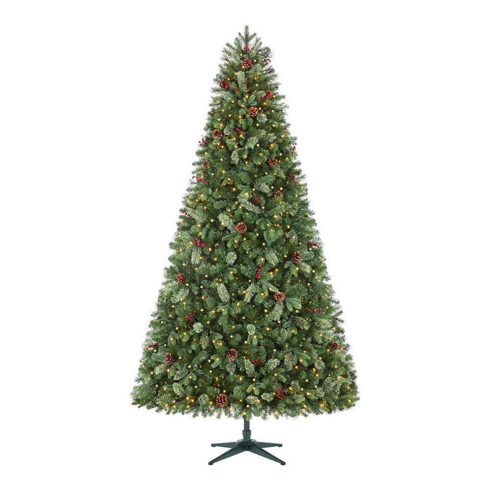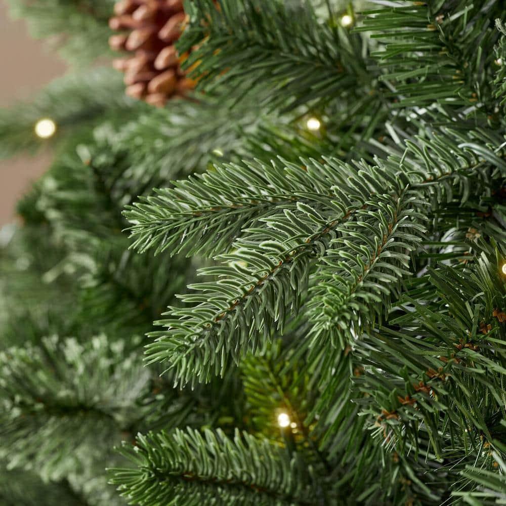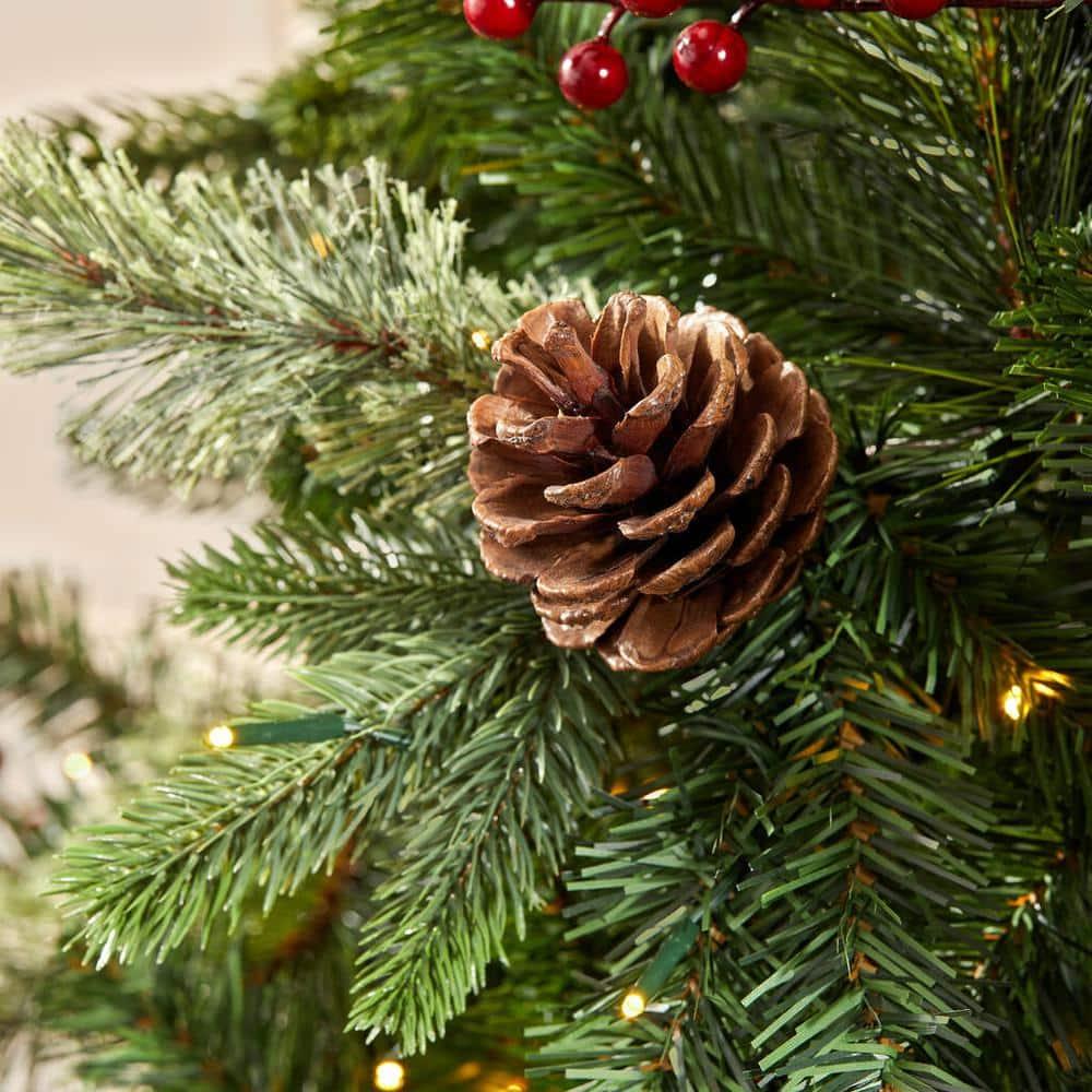 Add a stunning centerpiece to your living room's festive decor with this Westwhite fir artificial Christmas tree. Natural pine cones coordinate well with artificial red berry accents for a charming look, showcasing an almost lifelike appearance. 2,880 branch tips create an endearing yuletide atmosphere. This Westwhite fir artificial Christmas tree allows simple access to plugs with -set functionality, and foot pedal lets you easily operate 800 warm white micro fairy LEDs.