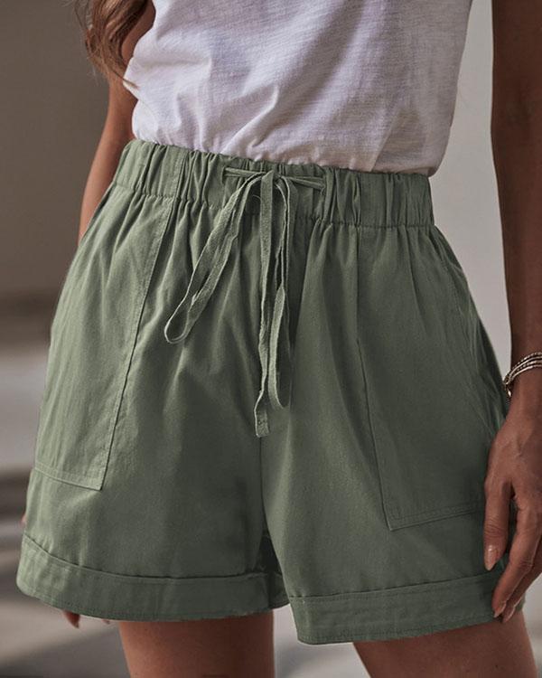 a-line stretch lace high waist shorts with pleated pockets