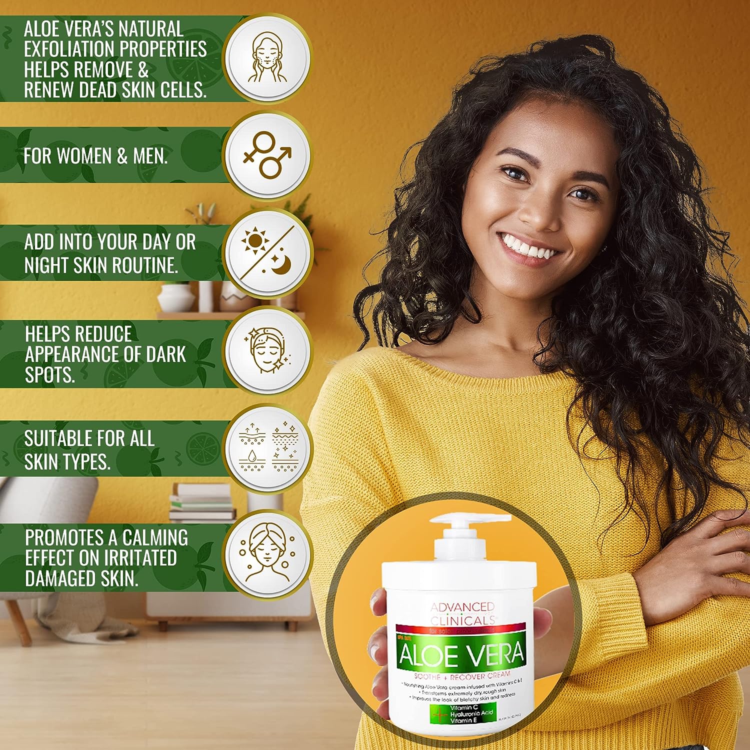 - Advanced Clinicals Aloe Vera Soothe and recover cream is made with nourishing Aloe Vera and infused with Vitamin C and Vitamin E.