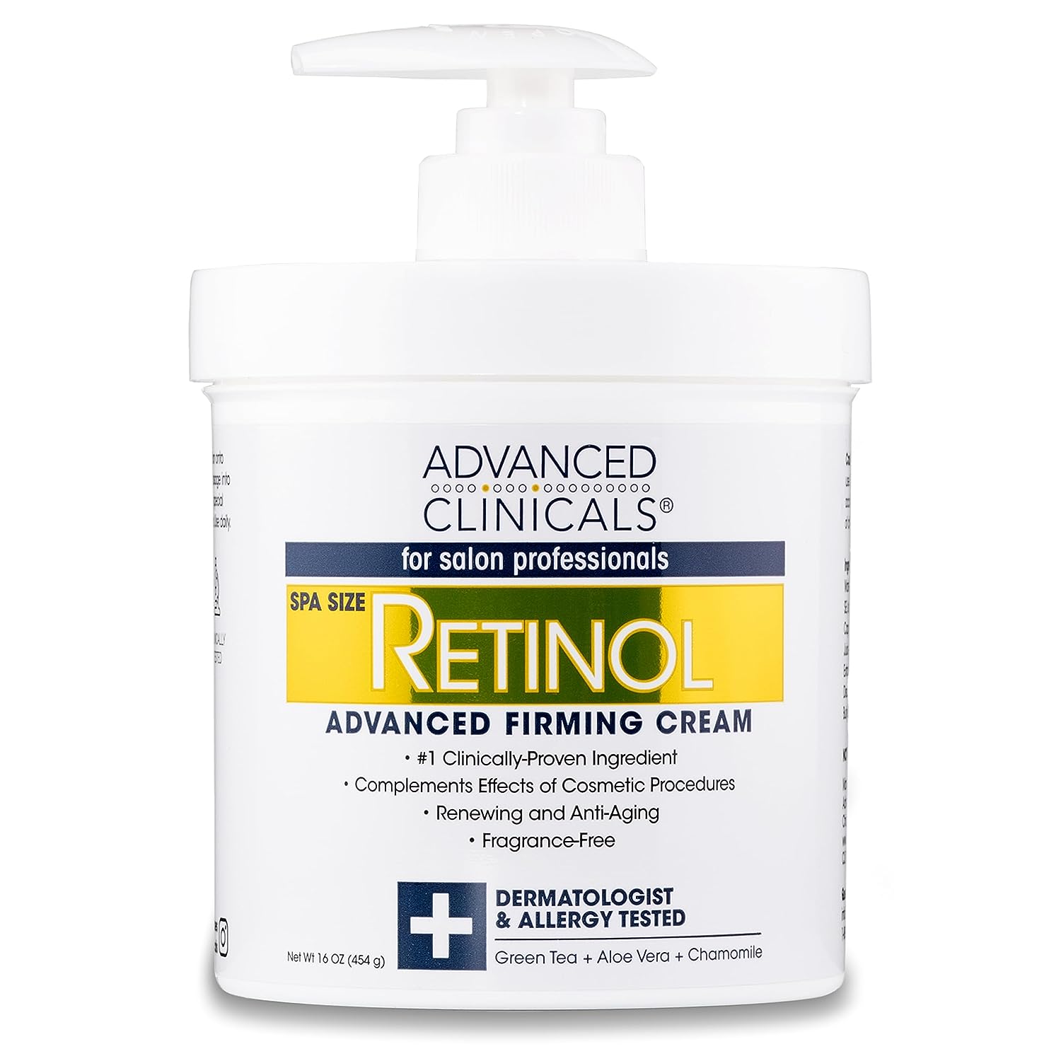 - LARGE SPA SIZE RETINOL FACE & BODY CREAM â With age our skin loses elasticity & moisture, this Advanced Clinicals Retinol Moisturizer Body Lotion & Face Cream is the perfect combination of anti aging ingredients with natural-antioxidants to help you promote more radiant skin & a more youthful look. Most retinol creams or other retinol products come in small 2 ounce or less jars that only last a short time, but this Retinol Cream comes in a large 16Oz Spa Size jar with a convenient to use pump.