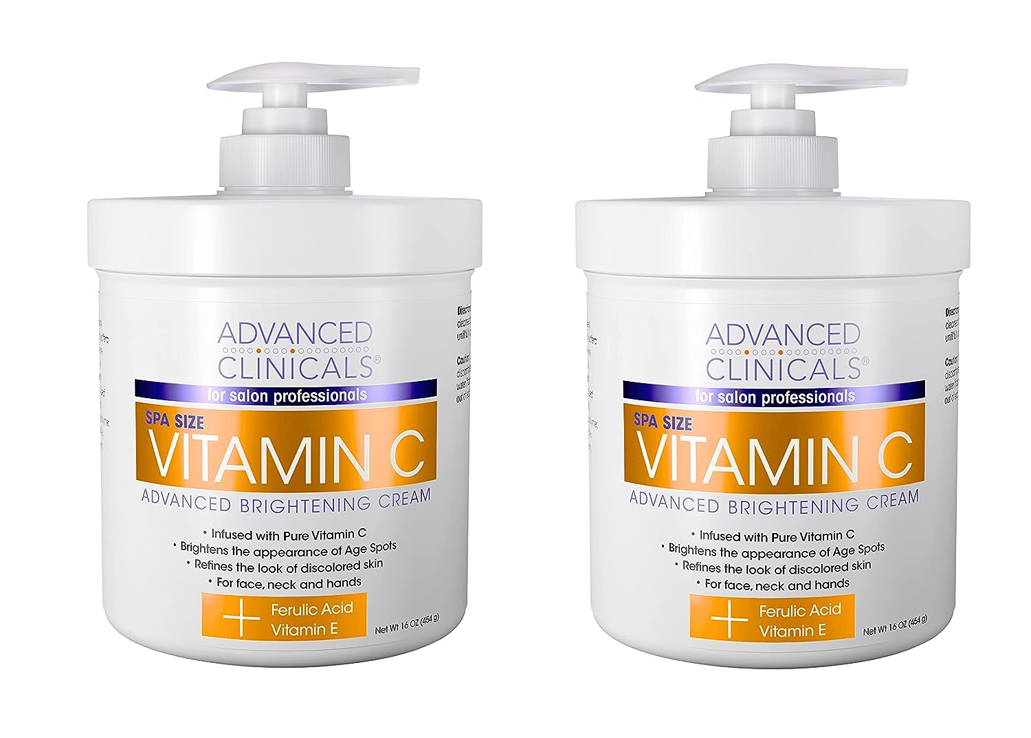 Advanced Clinicals Vitamin C Face & Body Cream Moisturizing Skin Care Lotion, Anti Aging Vitamin C Skincare Moisturizer For Body, Face, Age Spots, Wrinkles, & Sun Damaged Skin, Large 16oz (2-Pack)