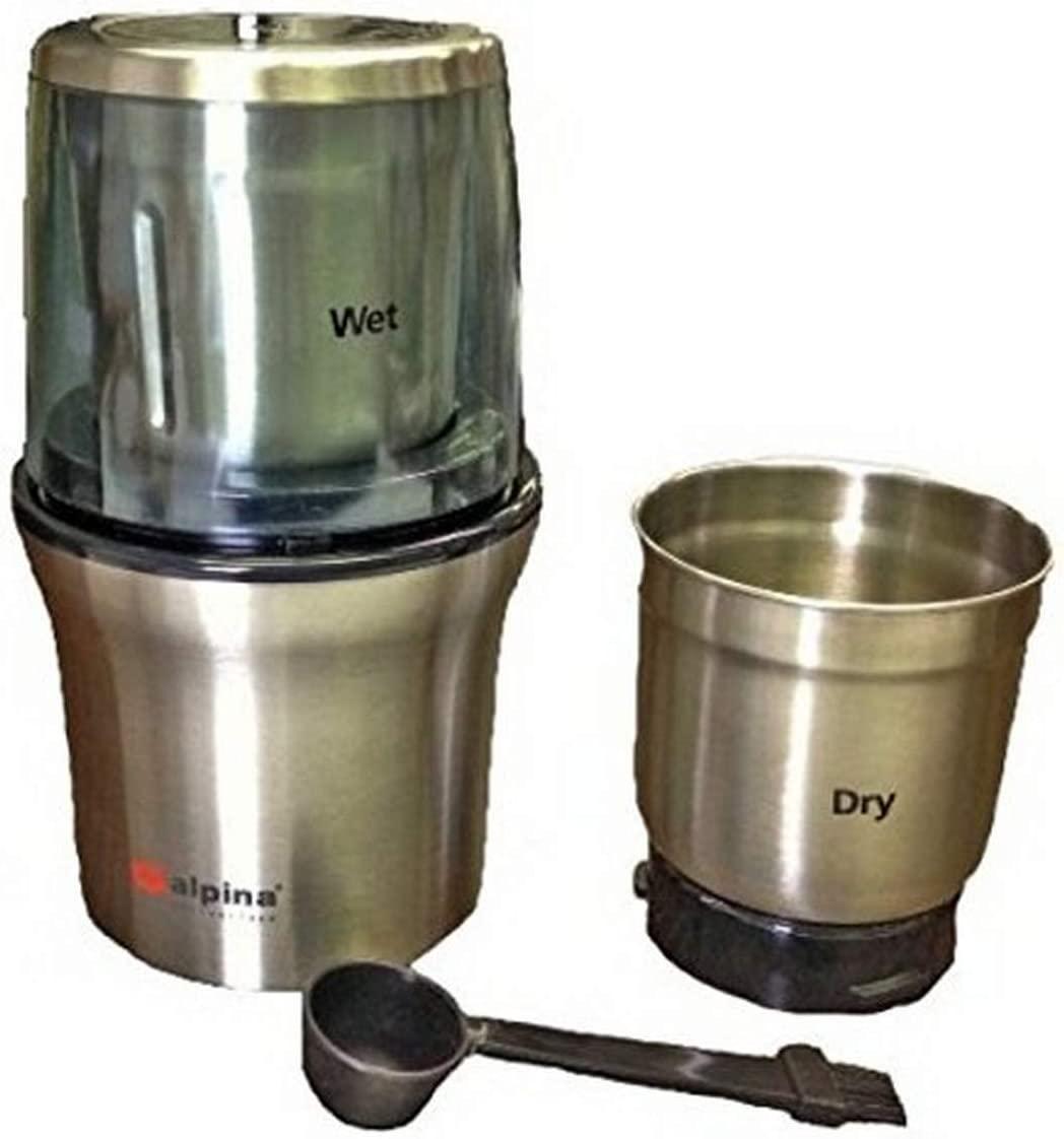 Alpina Wet & Dry Coffee Wet and Dry Spice Grinder 220 Volt, Small, Silver (Not for USA)