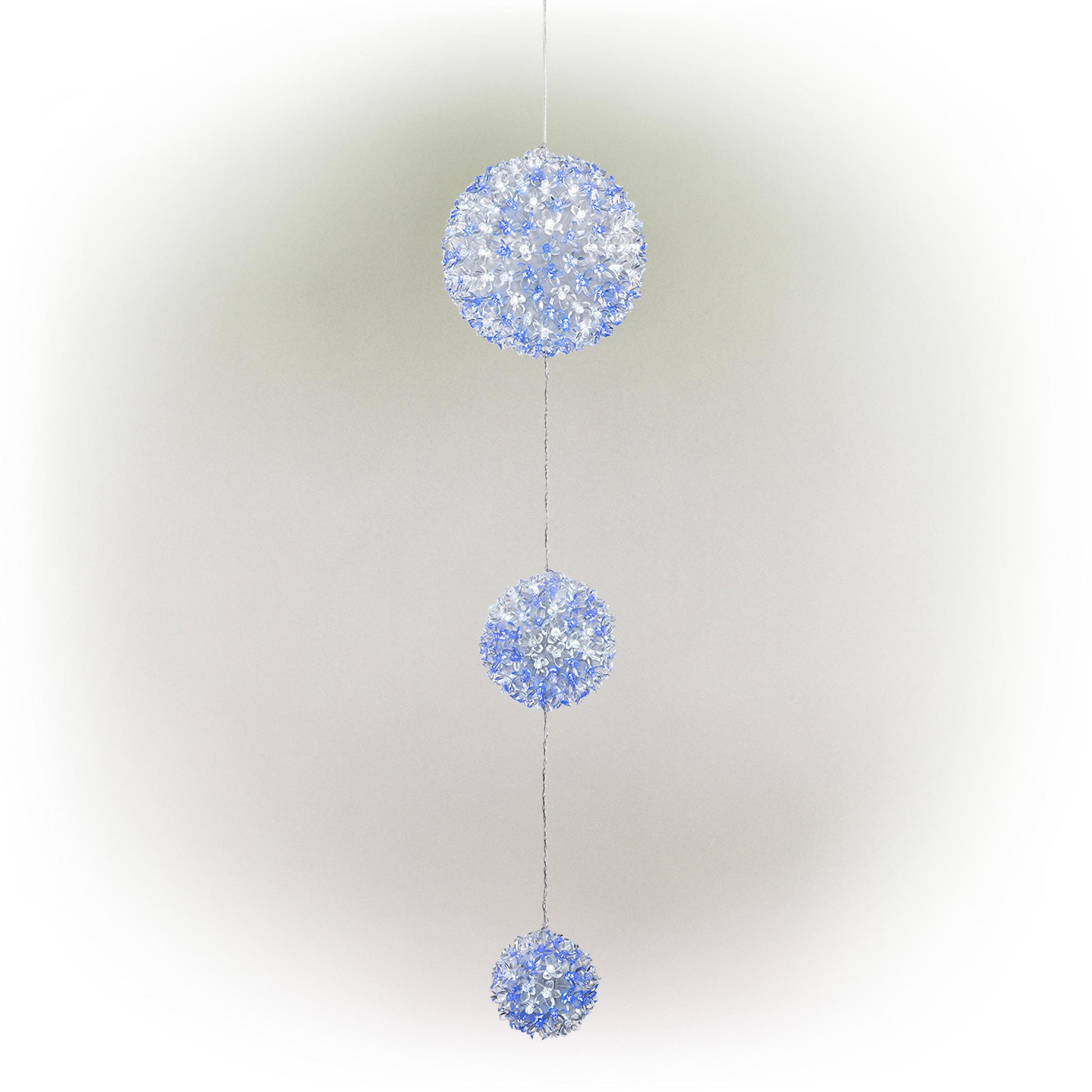 Alpine Corporation 3-Tier Ornament String Holiday Decoration with LED Lights, Blue/White
