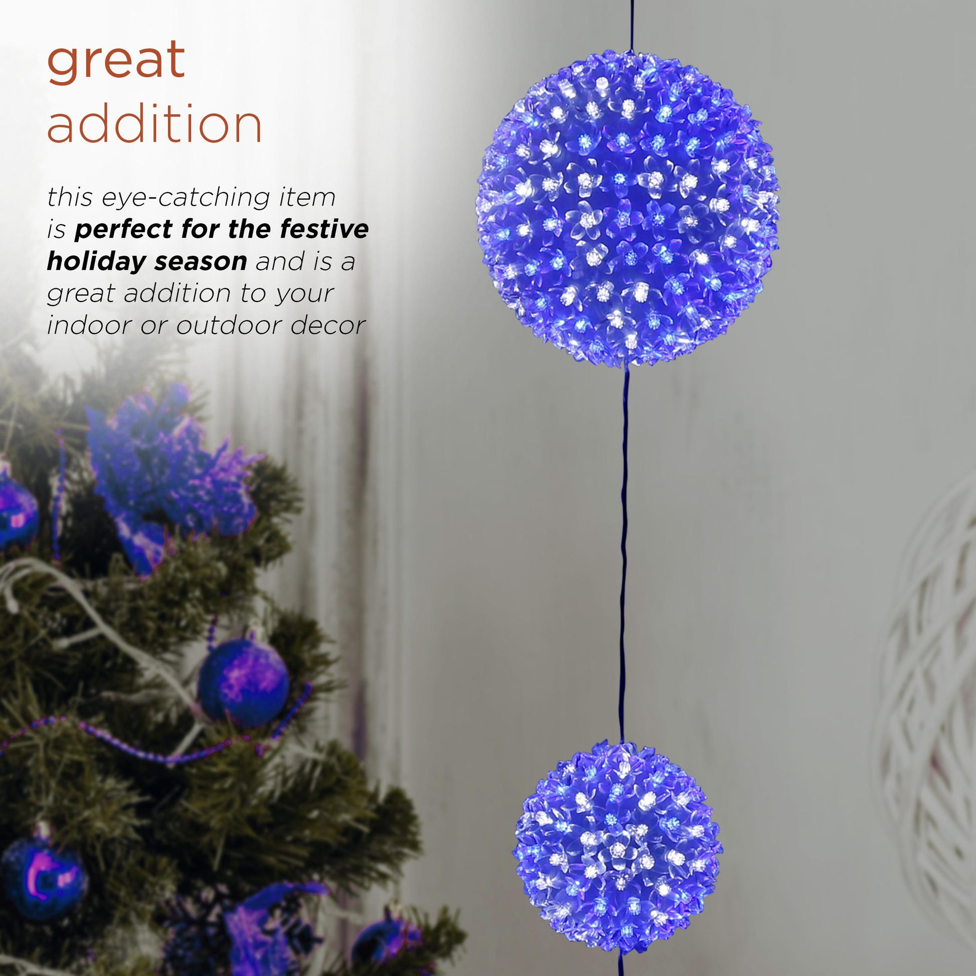 - MULTICOLORED LIGHTS: Light up your evening scenery with 350 blue and white LED lights for a festive display