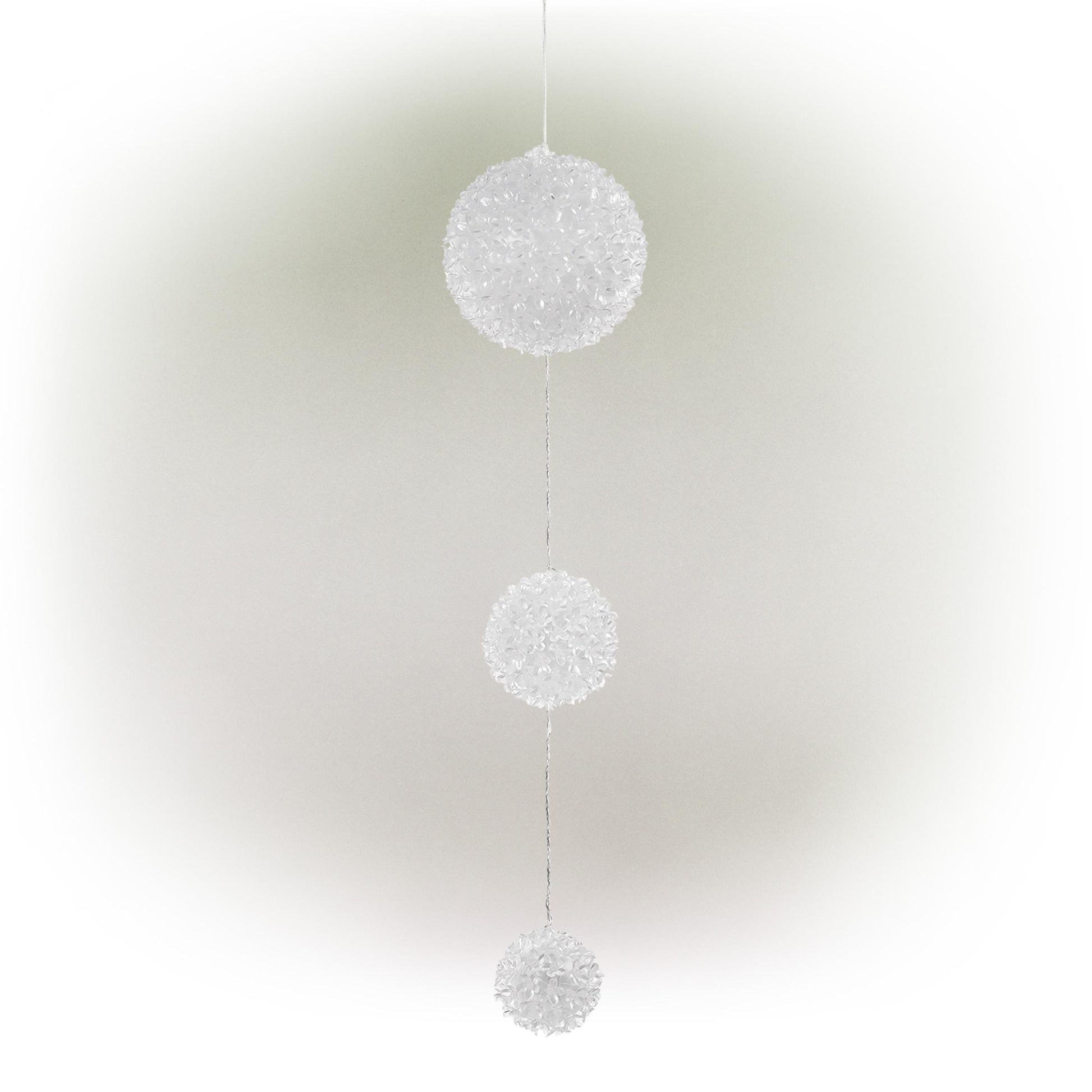 Decorate your home with the Alpine's 3-Tier Christmas Ornaments with LED Lights! This eye-catching item is perfect for the festive holiday season and is a great addition to your indoor or outdoor decor. This ornament features 350 blue and white LED lights to bring festive cheer to your home. Easily setup this ornament by hanging it at an elevated height to brighten your holiday decor. This hanging ornament is UL listed to ease all your worries. The largest tier has an 8" diameter, perfect for your home. Enhance your holiday setup with Alpine's 3-Tier Christmas Ornaments!