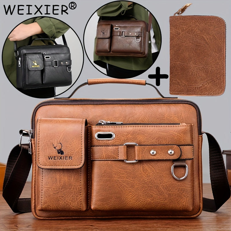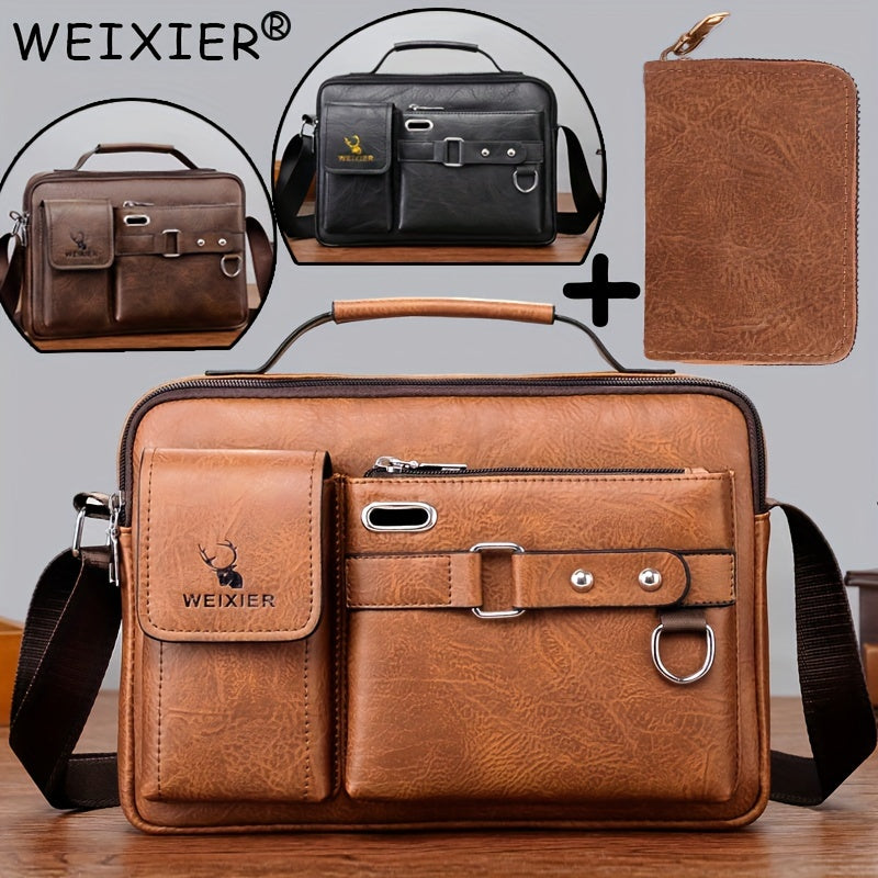 【WEIXIER】 Men's PU Material Crossbody Bag Men's Business Crossbody Bag Portable Shoulder Bag Casual Bag Men's Bag Gift For Father /Anniversary