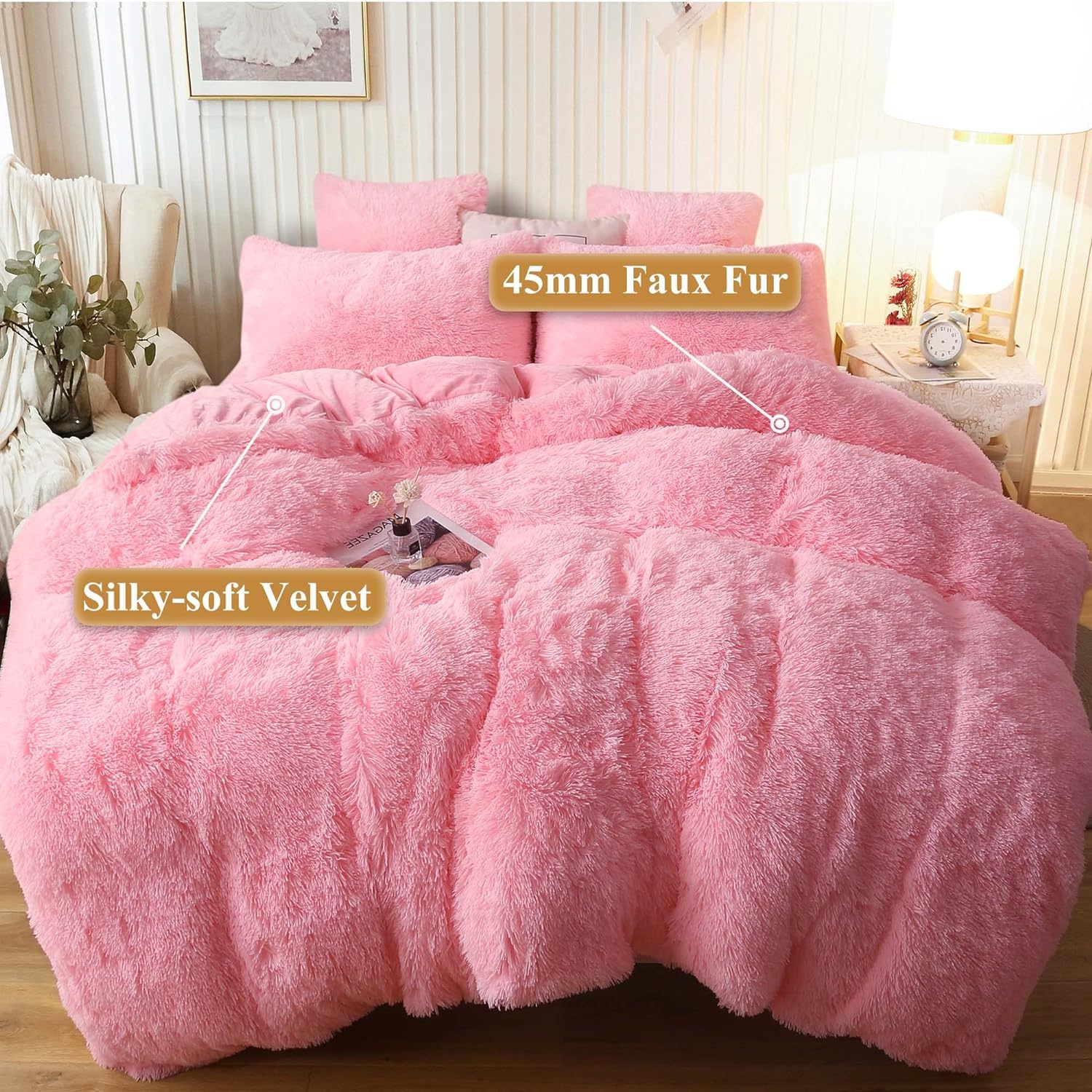 - This unique gorgeous fluffy plush shaggy fabric duvet cover ,can makes the product more luxurious and comfortable and gives you the most comfortable feel when you are about to fall asleep or rest in bed.We believe this uniquely ed duvet cover is what you want.This is a wonderful way to update your bedroom and reflecting your pursuit of luxury and comfort.Due to the special nature of the product, it is recommended to use after shaking and it will be more fluffy.